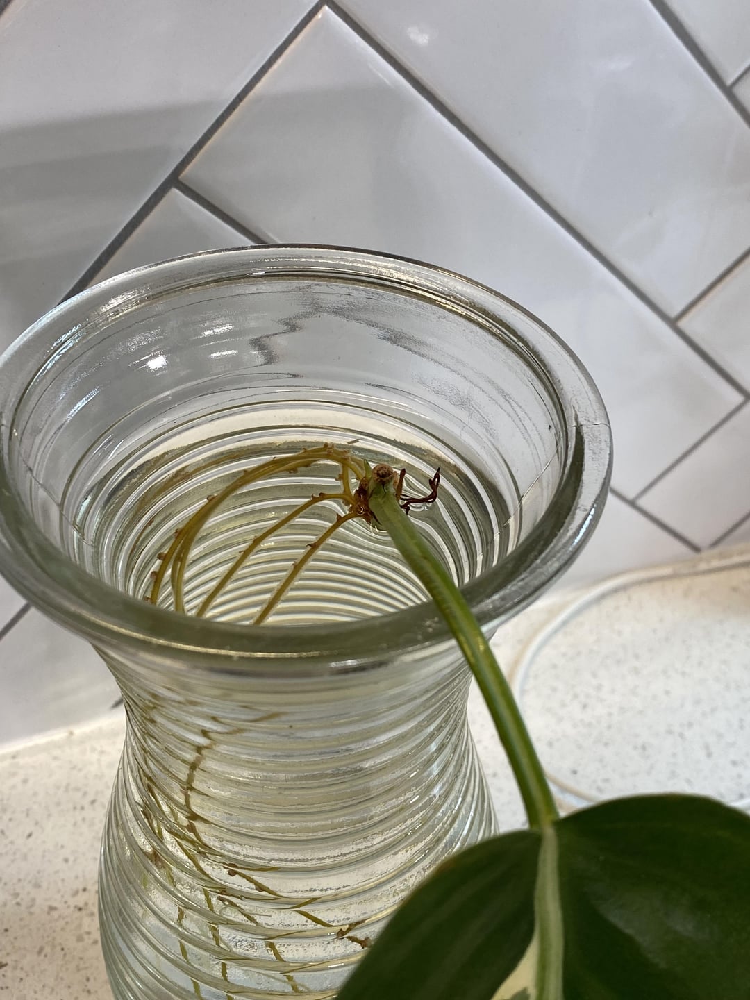 私は植物がかなり初めてで、昨年はお店の景品としてこの切断を受けました。私はそれを鍋にするつもりでしたが、人生は邪魔になり続けています。私はまだ土壌に変換したいと思っていますが、根が6か月間水中によく確立されているので、植物に衝撃を与えることを心配しています。この時点で水にとどまる方がよいでしょうか?もしそうなら、葉の成長を促進するために私は何ができますか?