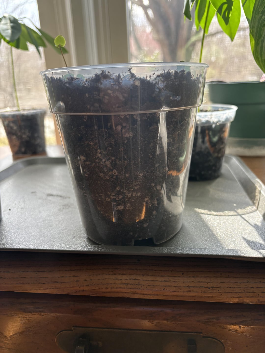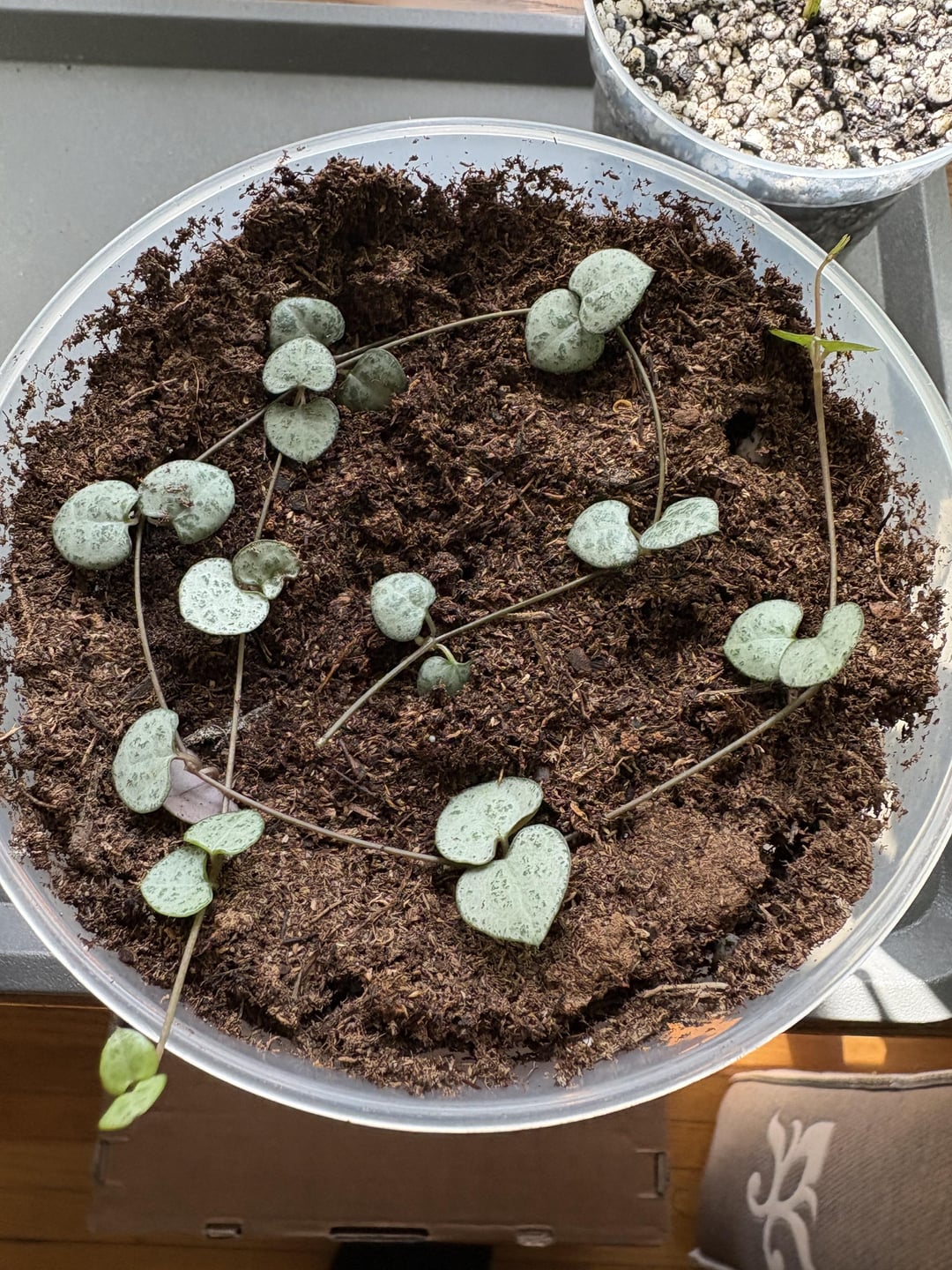 私は私の家植物の趣味に戻ってきたので、私は数ヶ月間この一連の心を持っていました…私はこれをあまりにも多くの土壌に座っていますか?それは少し新しい成長を出しているように見えますが、私が知っていれば、私が今知っていることは、はるかに小さな鍋でそれを始めたと思います。