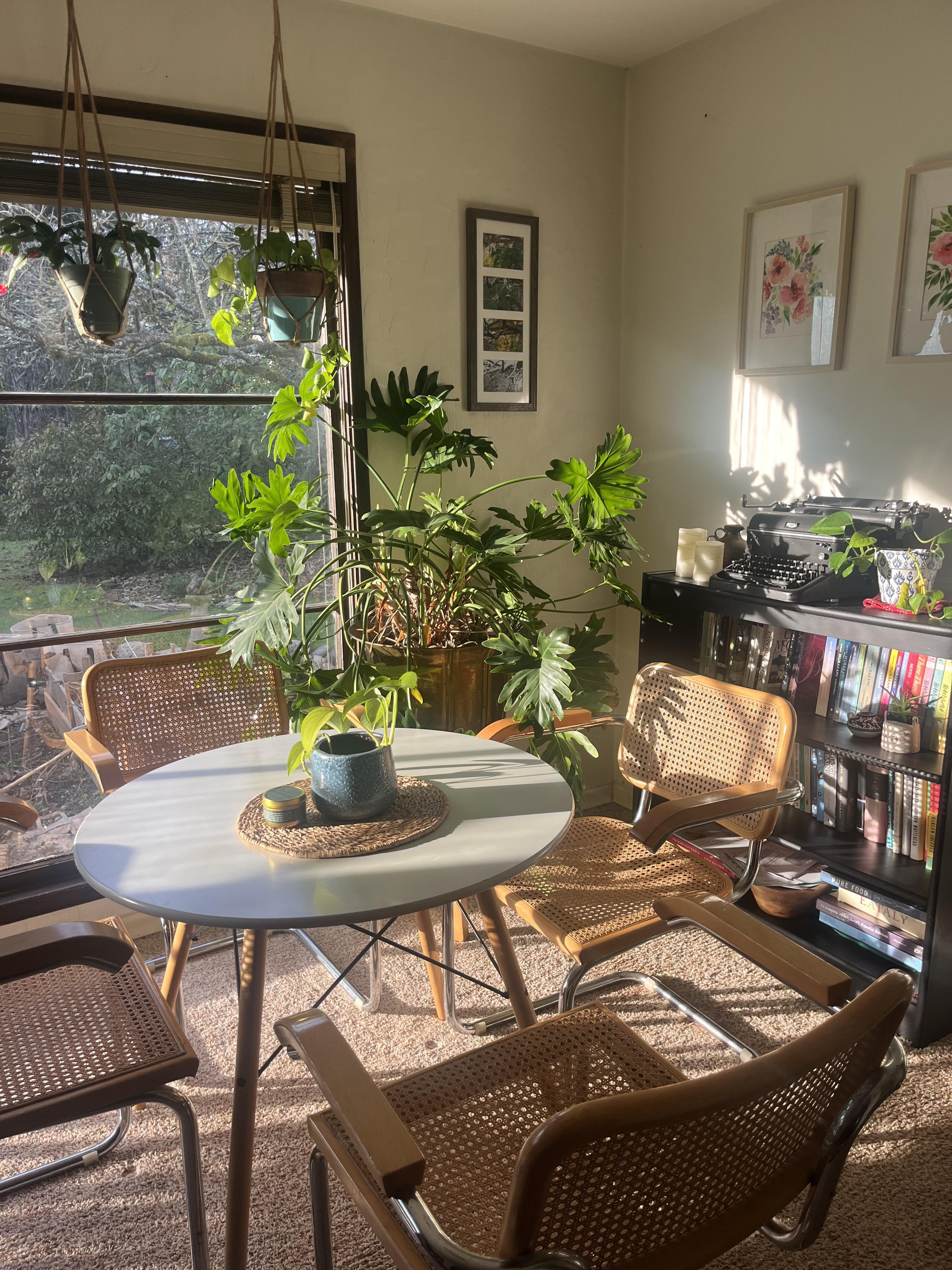 私はこの大きな植物が角からわずかに出ているので、その約半分が良い太陽を得ます。私はそれがすべての葉が太陽になる場所に窓をブロックしたくありませんが、私は太陽の下ではなく側面にたくさんの葉を失います。