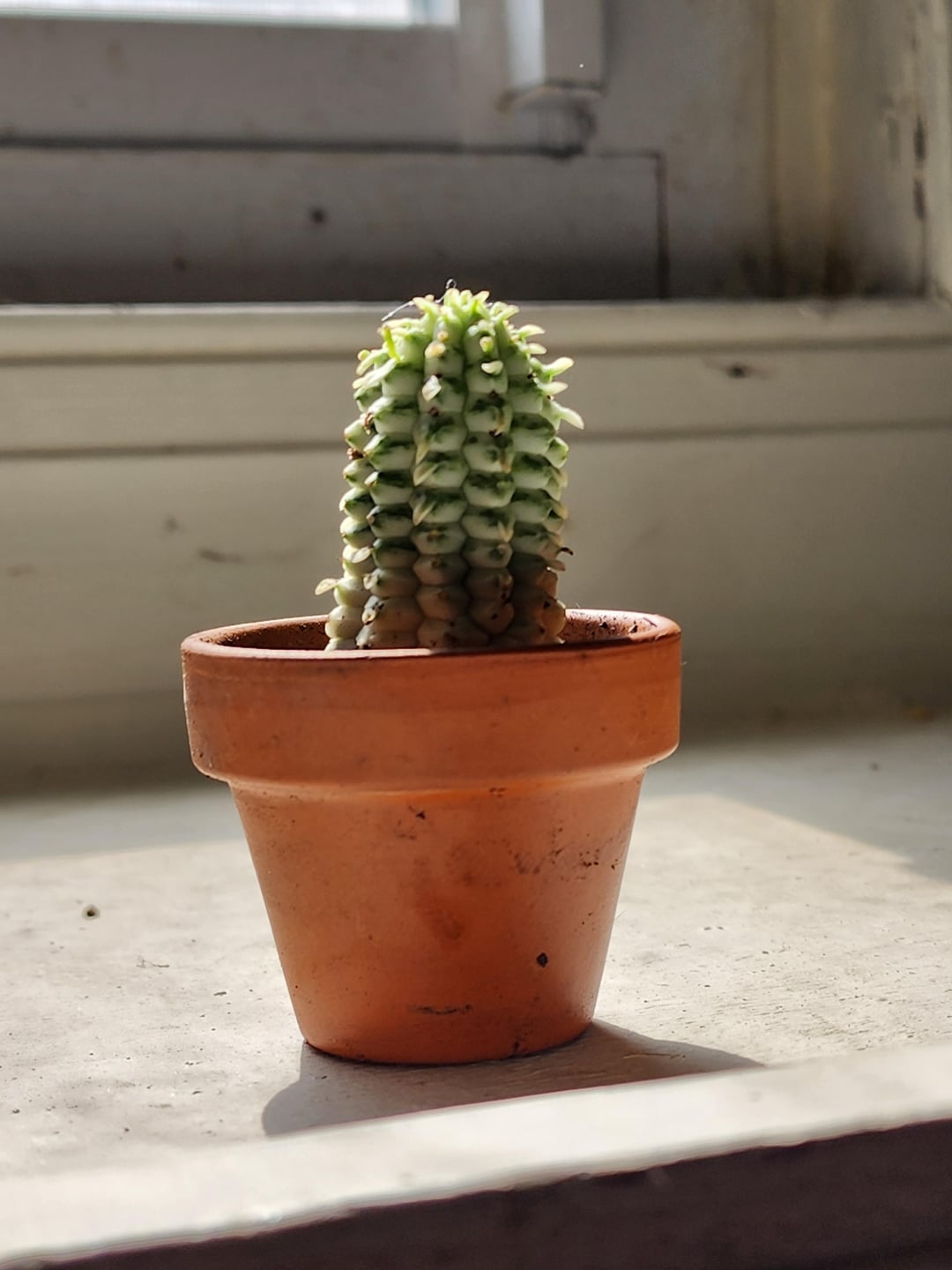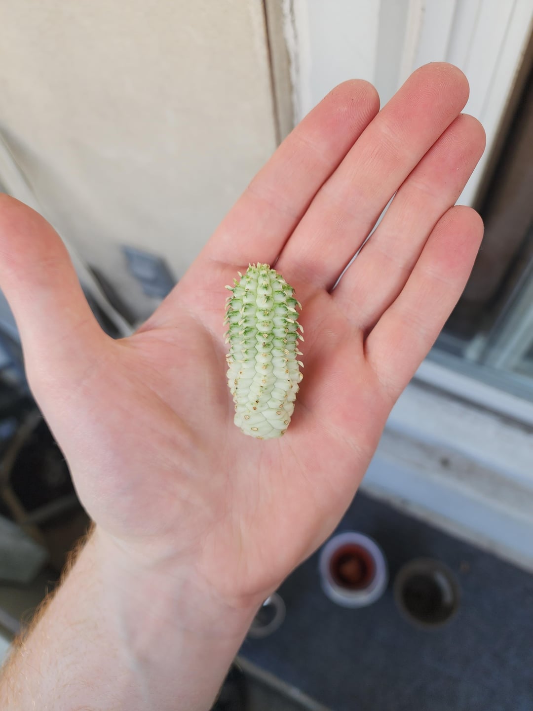 何にも触れられていない小さなコーンコブサボテンを見つけました!温室の床で枯れるよりも、私はそれがより良い生活をすると思いました!