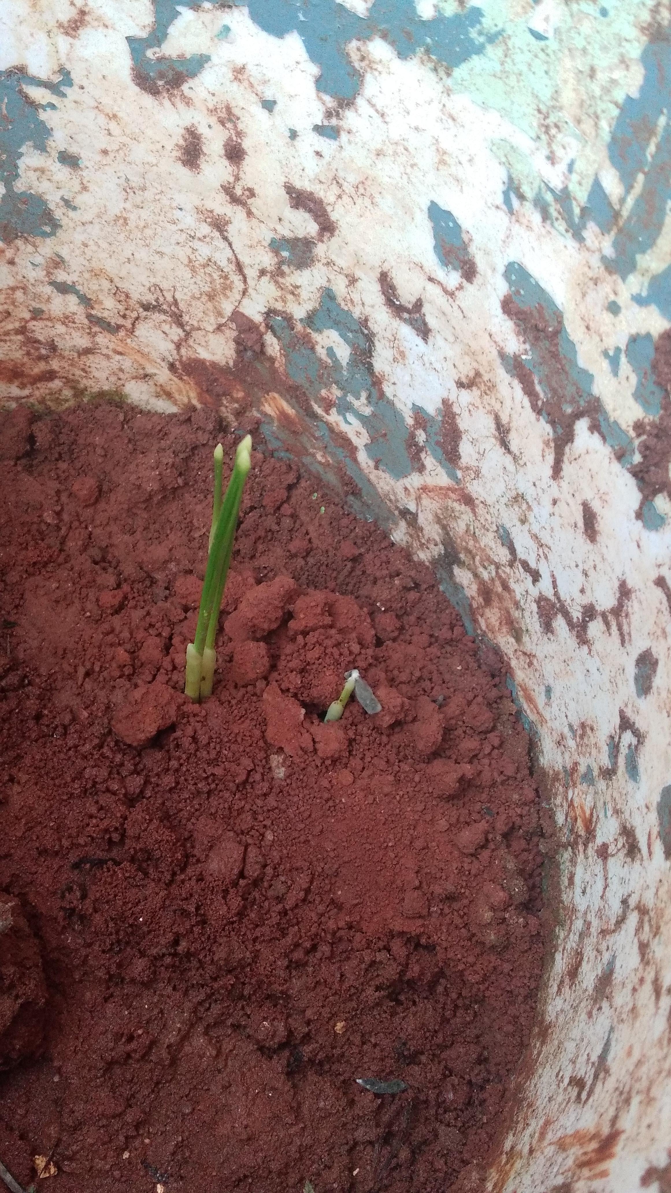 私はこの容器を持っています。そこには土壌を保管していて、時には倒れた葉や枝のような有機材料を埋めます。今、私はここで何かが成長しているのを見ています。誰かがこれが何であるか知っていますか?