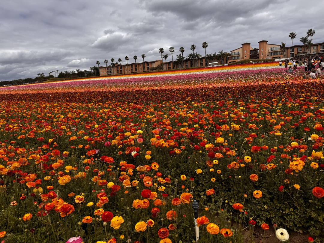 私は過去16年間フラワーフィールドを訪れることができて幸運でした。月曜日に行って、畑は約30%咲きました(しかし、まだ壮観に見えます)。 毎年55エーカーのカラフルなラナンキュラスがサンディエゴの郊外にあるカリフォルニア州カールスバッドの丘の中腹に絵を描きます。フィールドは3月1日に営業し、母の日を閉じます。