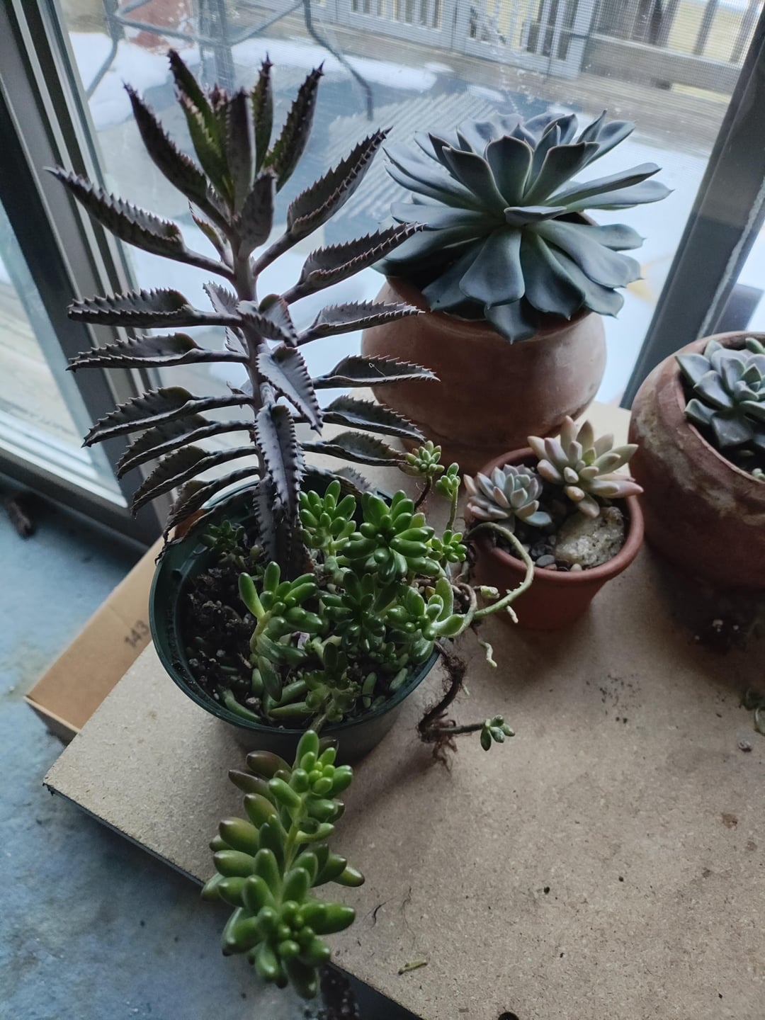 セダムジェリービーンズとして販売されています。 中にはセダムジェリービーンズと大きなマザーオブミリオンズ、エケベリア2本、そしておそらくクラッスラが入っていました。