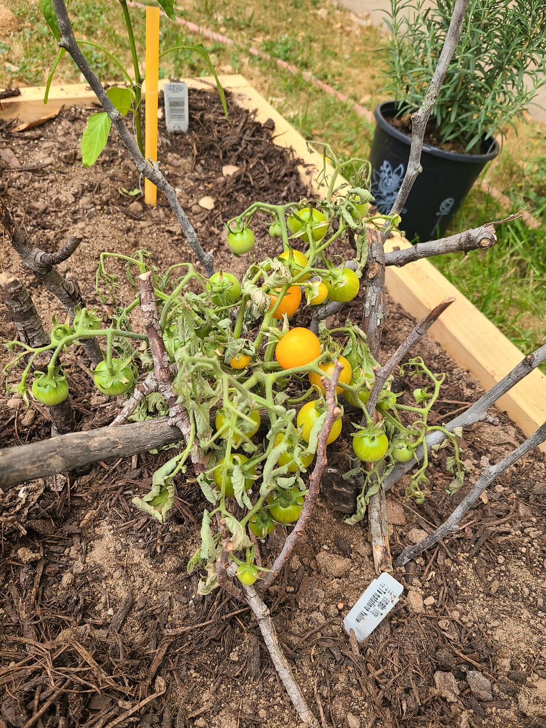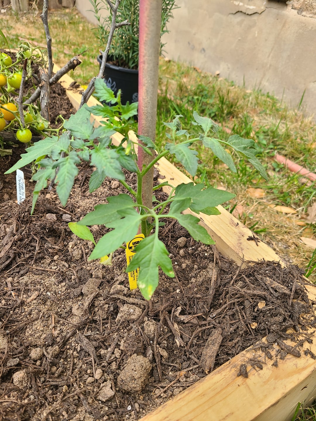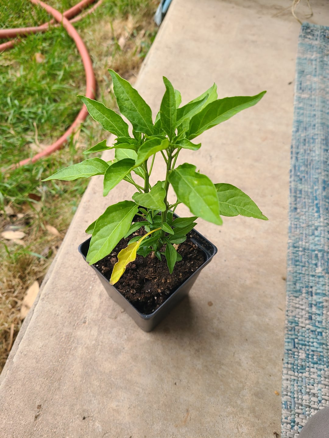 (私がトマトを持ち上げようとしていたスティックを気にしないでください。)私はゾーン8bに住んでいます。私はこれらの植物を約1週間持っています。マルチをトマトとハラペーニョを、水分を除去しようとする試みとして、私が水をやりすぎた恐怖から動かしました。私はそれがすべてトマトとハラペーニョで非常に濡れていると言う湿気の読者を持っていますが、イチゴは適度な湿っています。 1週間前と翌日に移植したとき、私は良い水やりをしました。それはまだ湿っているので、私はそれを水やりにしていません。なぜなら、私はそれらを過剰にしているのか、それとも彼らが乾燥しすぎて太陽で死にかけているのかわかりません。すでに数日で90度になりました。また、移植するときは、トマトとハラペーニョと一緒に6-8-4のRoseglo肥料を入れましたが、イチゴではありませんでした。最後の写真は、まだ移植していないチリペキンですが、庭のバッグに入れようと予定しています。それはそれらすべての中で最高のように見え、他の人とは違って新しい成長がありますが、私も心配しているカップルの葉が黄色くなります。