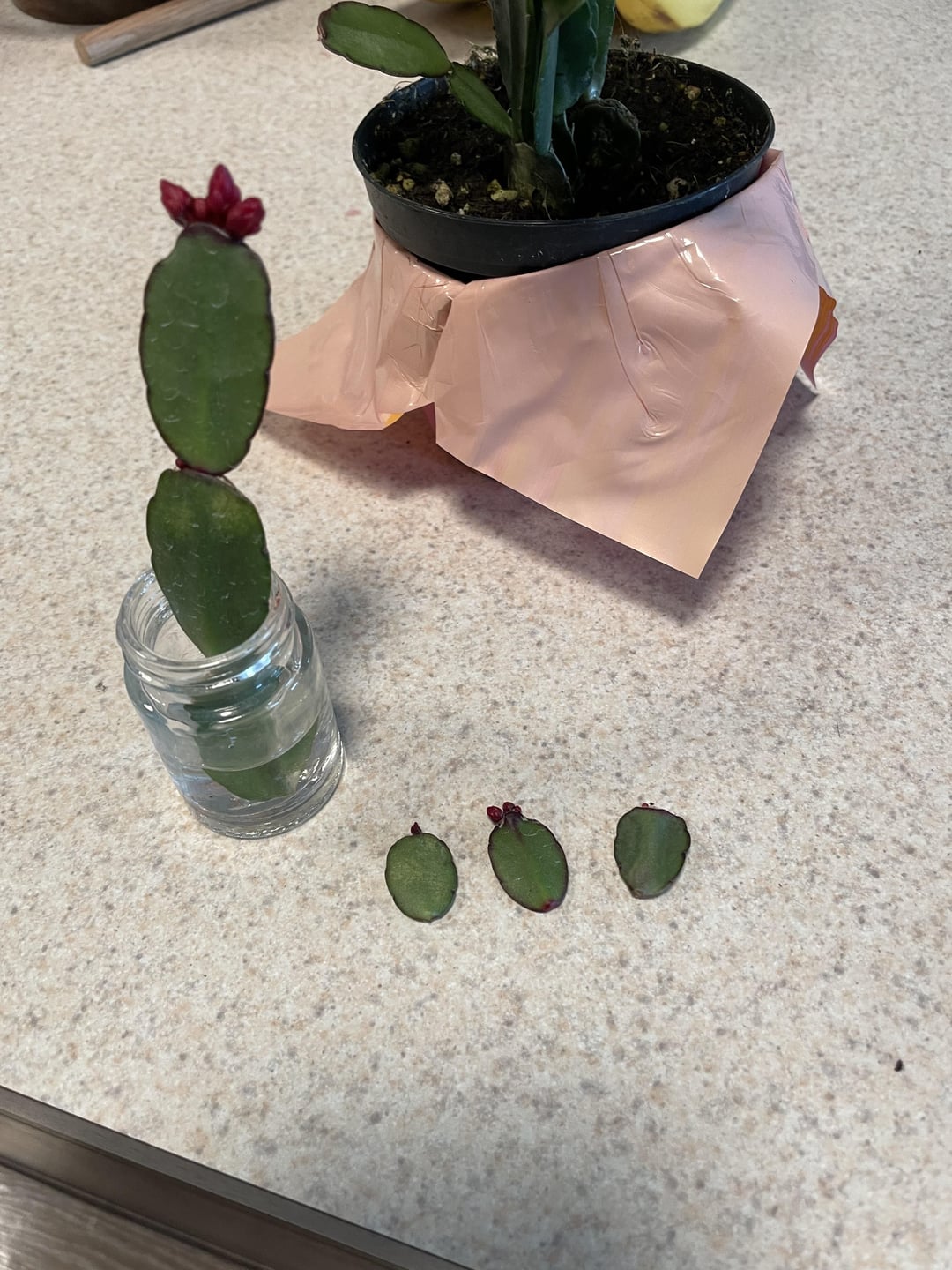 ついに実際のイースターサボテンを見つけました。家に帰る時間は、私が不器用であるためにいくつかのピースが壊れました。 3つの小さなピースが小さすぎて伝播できないと思いますか?