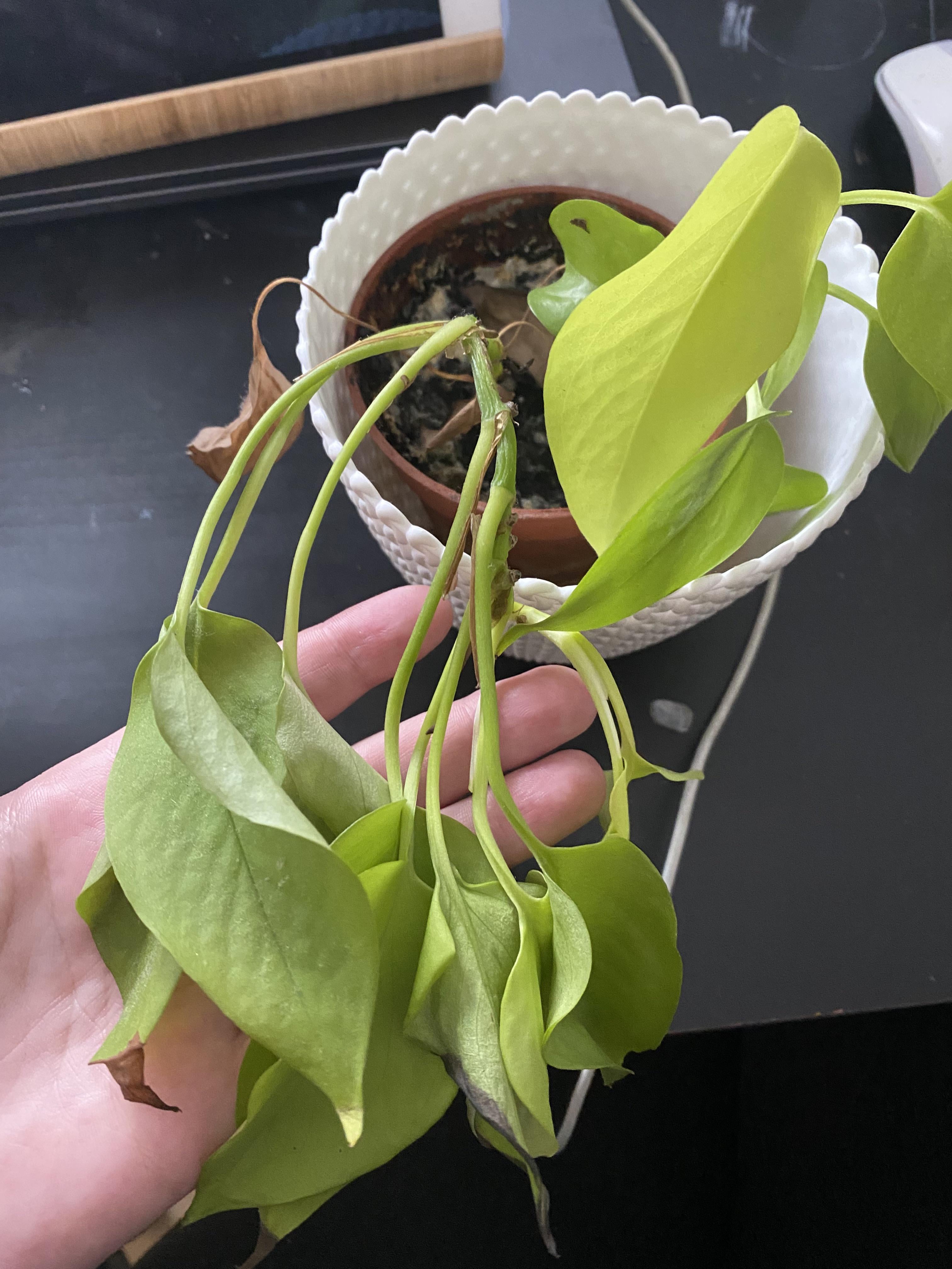 水やりを忘れてしまい、うっかり水をやりすぎてしまいました:(( 3日ほど経ちました。上の葉は元気ですが、私が持っている葉はなんだか縮れていて脆くなってしまいました。切って増やしてみようかな。 ? それとも、さらに数日待ちますか?