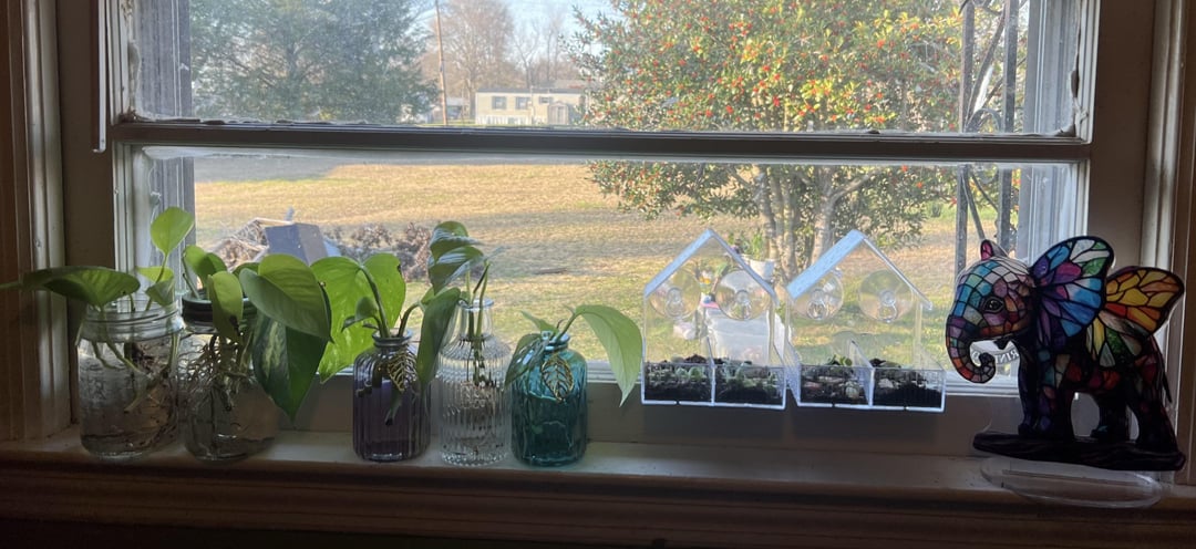 DIY「自然な根利ホルモン」??アロエ、シナモン、蜂蜜を使用して天然の根様ホルモンを作成することについての記事を読んだことがあるので、水中で支えることができます。誰かがそれを試しましたか? **私の窓にある私のかわいい始まりのプロップステーションの写真!!