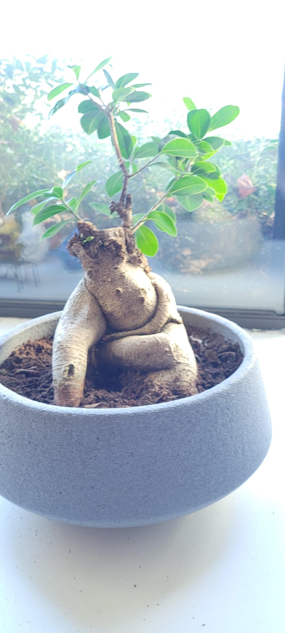 それは盆栽として販売されていたので、私はそれを浅い鍋に入れました。このことをトリミングするにはどうすればよいですか?カップルの枝が私がそれを落としたときに壊れました、そしてそれは私がそれを手に入れる前に明らかに剪定されていませんでした笑