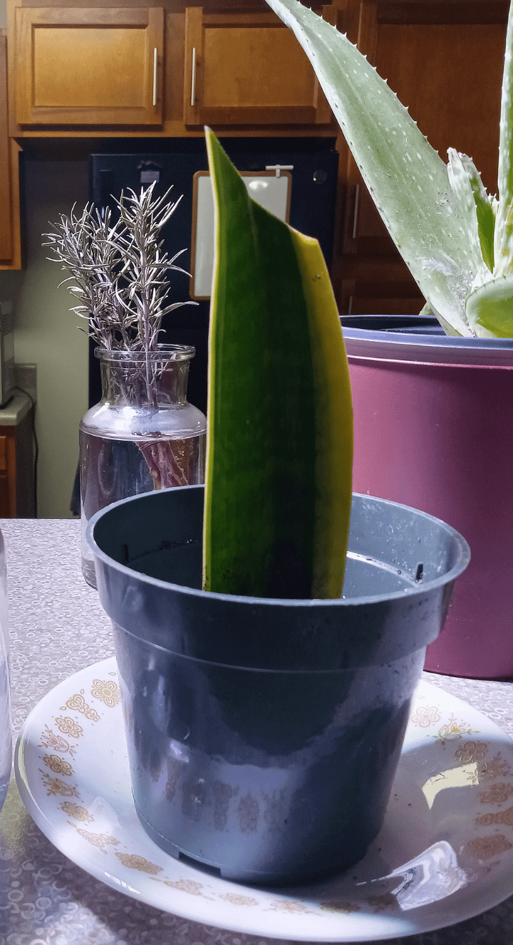 根が生えているので、2週間弱前に水から土に移しました。 私はヘビの植物に月に一度だけ水やりをしますが、最初は挿し木にはもっと頻繁に水やりが必要かどうかわかりませんでした。 ありがとう!