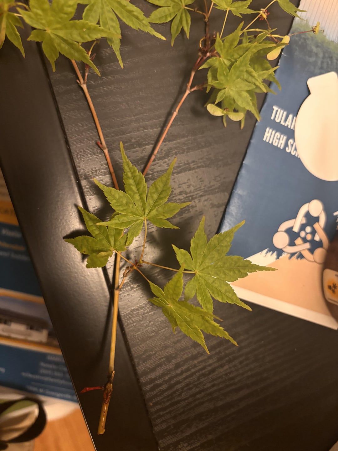 私の母の日本のメープルからカットを盗みました。現在、私が最もよく知っている1つの方法であるため、現在はポトスやその他の根付いた挿し木が付いた水中にあります。そうでなければ、私は挿し木をまっすぐに貼り付けます。これは、私が試みている最初の木であるため、どんなヒントも大歓迎です!