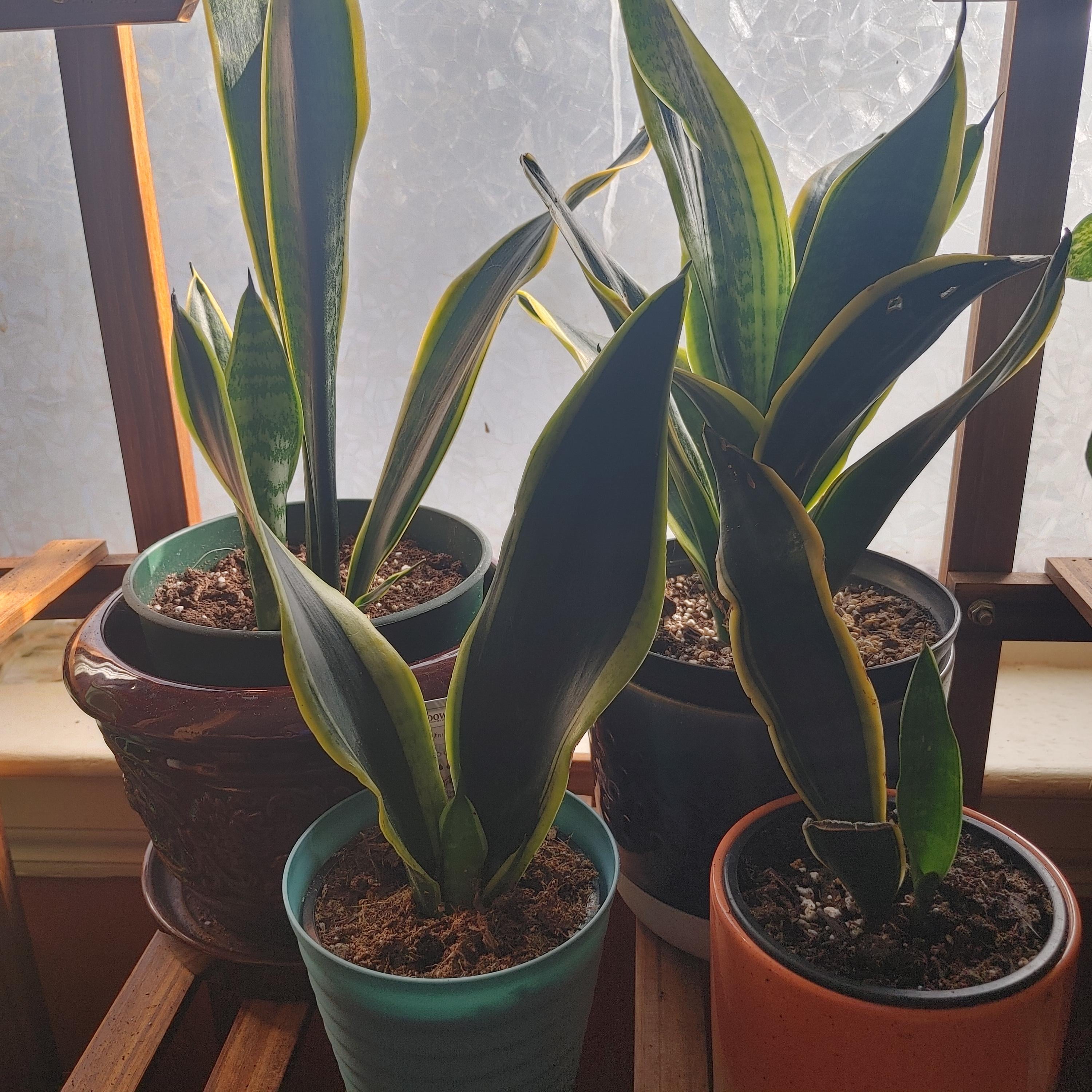 私はたくさんのヘビ植物を持っています、そして、私はそれらが一緒により良く見えるかどうか疑問に思っています。私は最近、2つの小さなものを購入しました。また、どこからともなく飛び出したばかりの2つの植物があります。