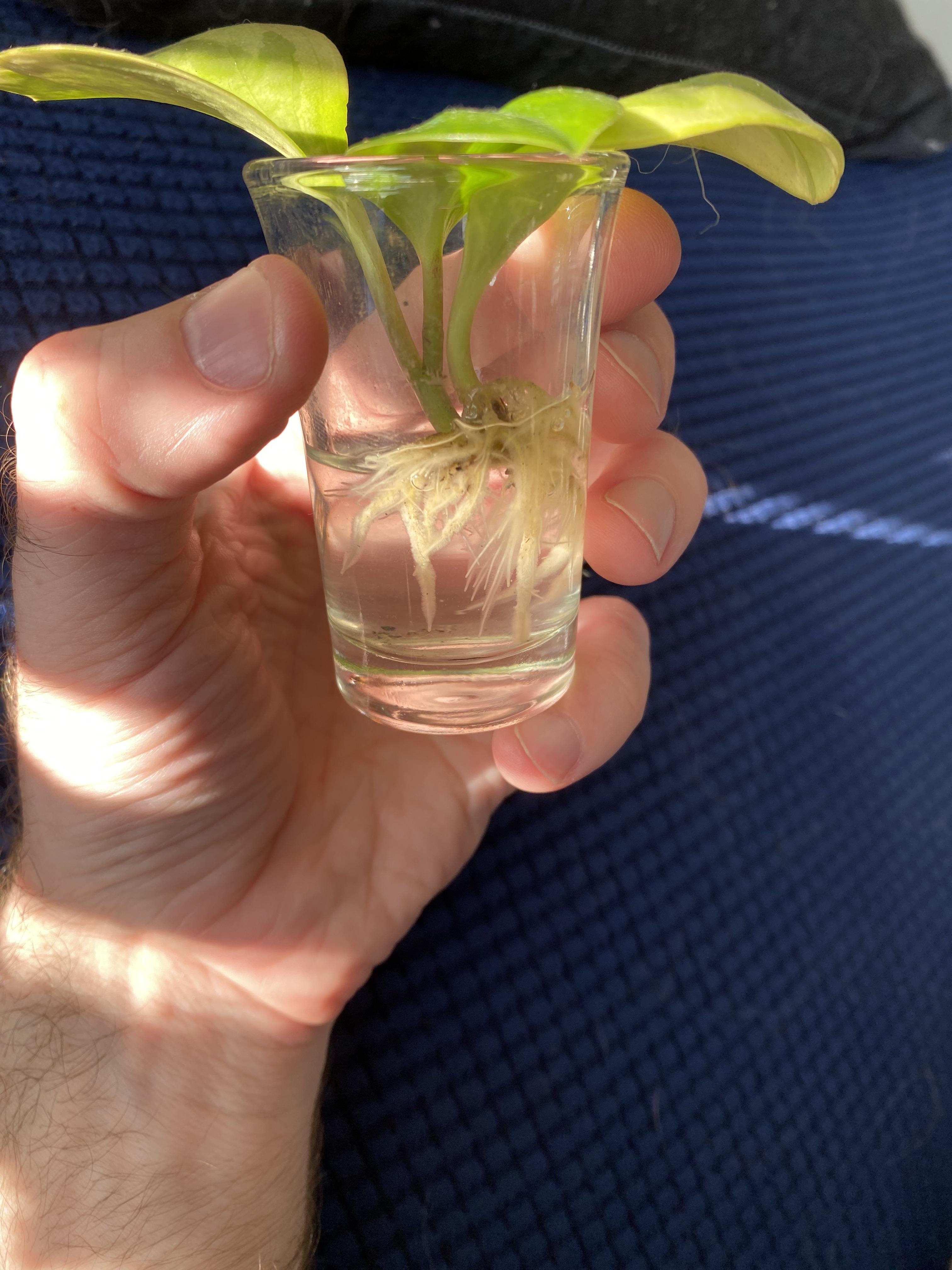 それは数ヶ月間水の中にありました。根は数週間前に本当にギアに撃たれましたが、まだ新しい葉の成長は見られません。
