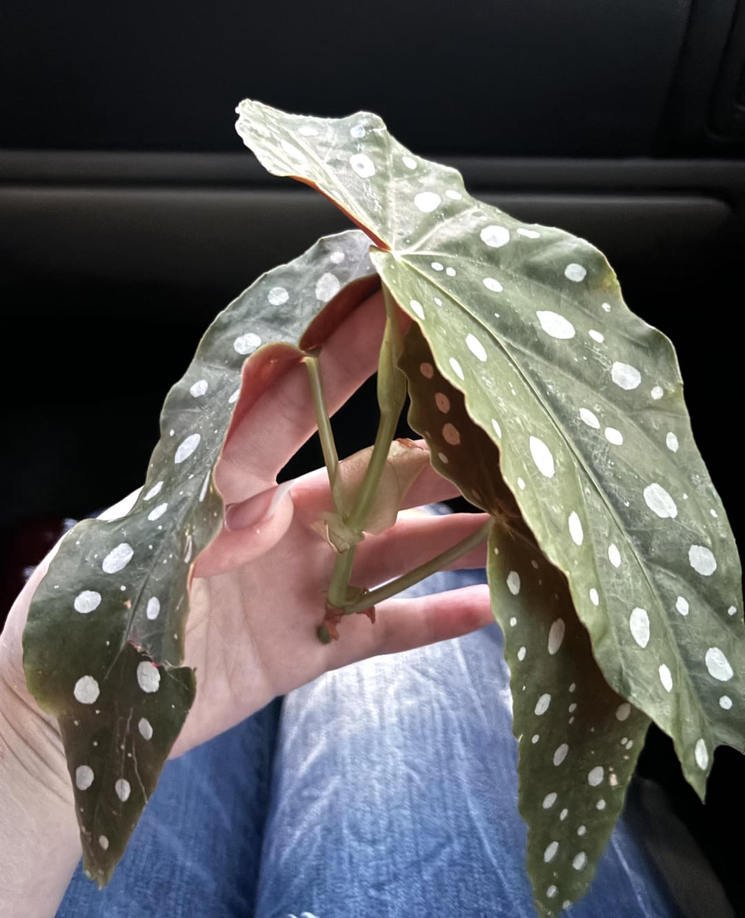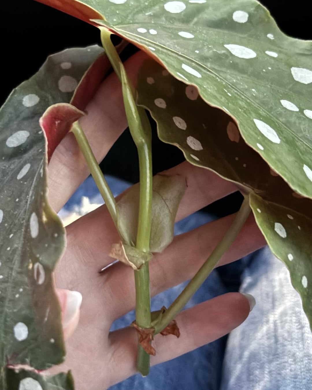 このポルカドットベゴニアをどこでトリミングして伝播する必要がありますか?私はそれを水に入れるつもりです。
