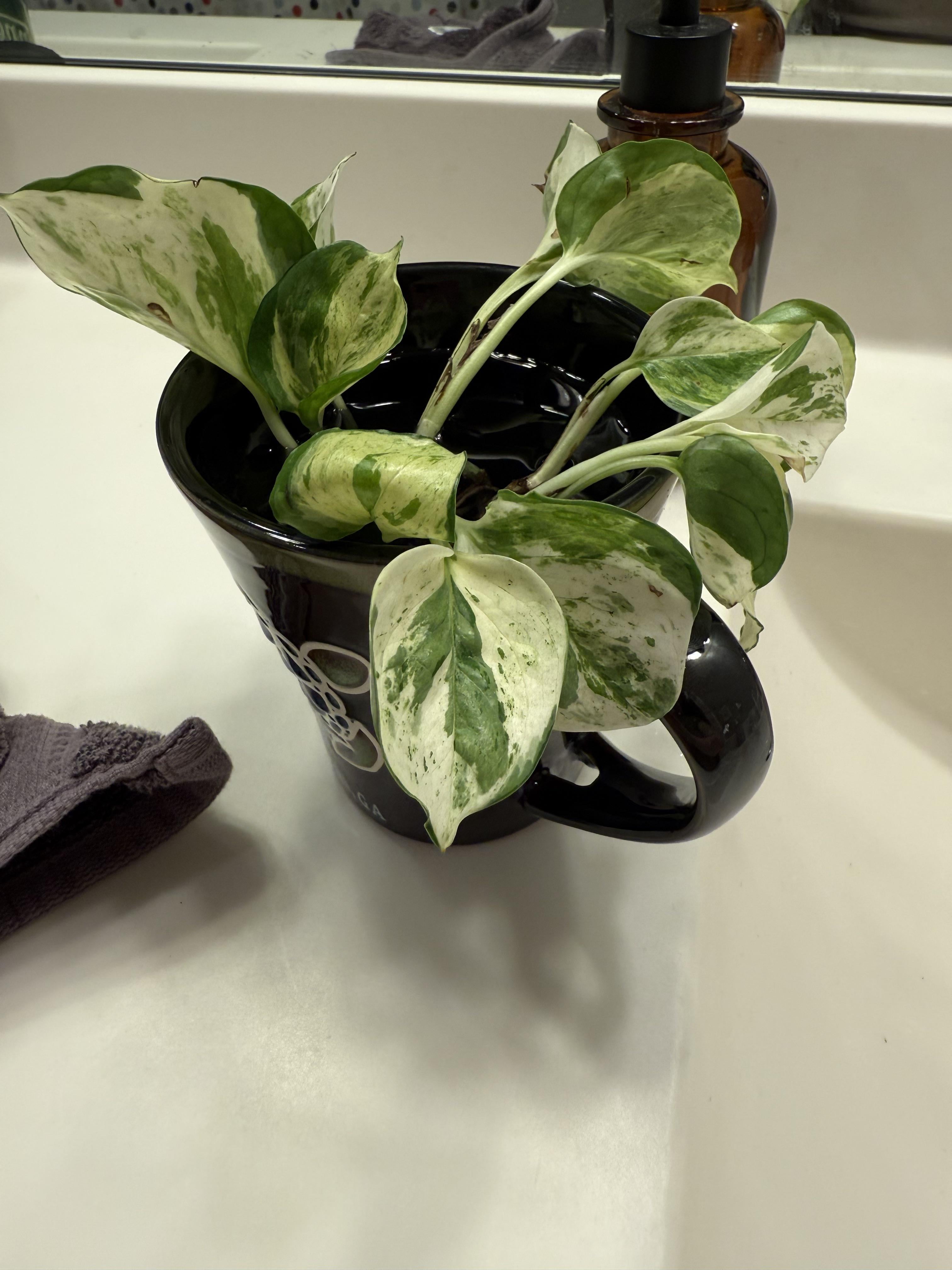 みんなのお気に入りの青い店にいて、彼らはマークダウンされたランのあるポットにこれらの美しいポトスを持っていました。蘭は死んでいて、土壌はかなり乾燥していて、ポトスセクションを撮った緑色の光が与えられました。彼らは今水中にいますが、私はそれらを育てる土で小さな透明な鍋に置くつもりです。それらのほとんどにはほとんど根がありません。