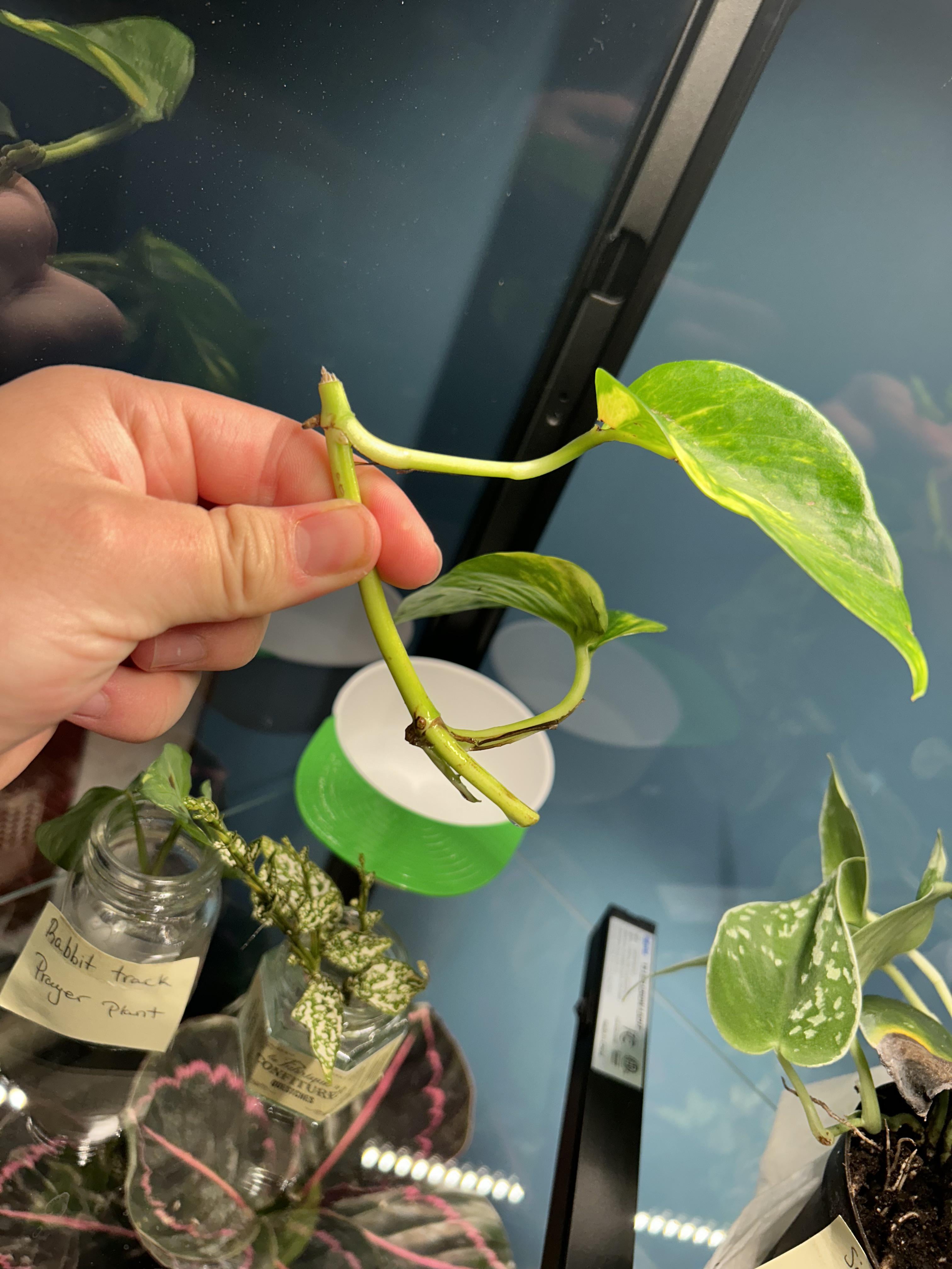 私のいとこにはこれがあります、私は金色のポトスをかなり確信しています、そして私はそれを試してみたいと思っていました。適切な場所で切ったのですか?事前にそれを調べるつもりでしたが、私は去る前にそれを切り取っただけです。その終わりをいくつかの水に置くことはできますか?