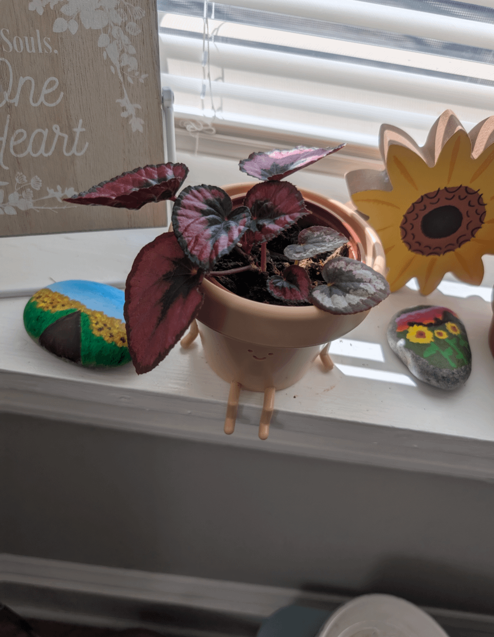 これらは、私が今まで提案しようとした最初のホームデポ/ロウの床の救助の一部であり、どちらもとてもうまくやっています!!ペペロミアは私が床で見つけた小さな茎であり、すぐに成長しています。私はそれを少し刻み、それを埋めるために支持することを考えています。ベゴニアは文字通り、しおれた、損傷した葉でした。最初の写真は私が彼らが提案している最高のものです、ベゴニアの葉はちょっと見るのが難しいですが、それは他の小道具の背後にあります。