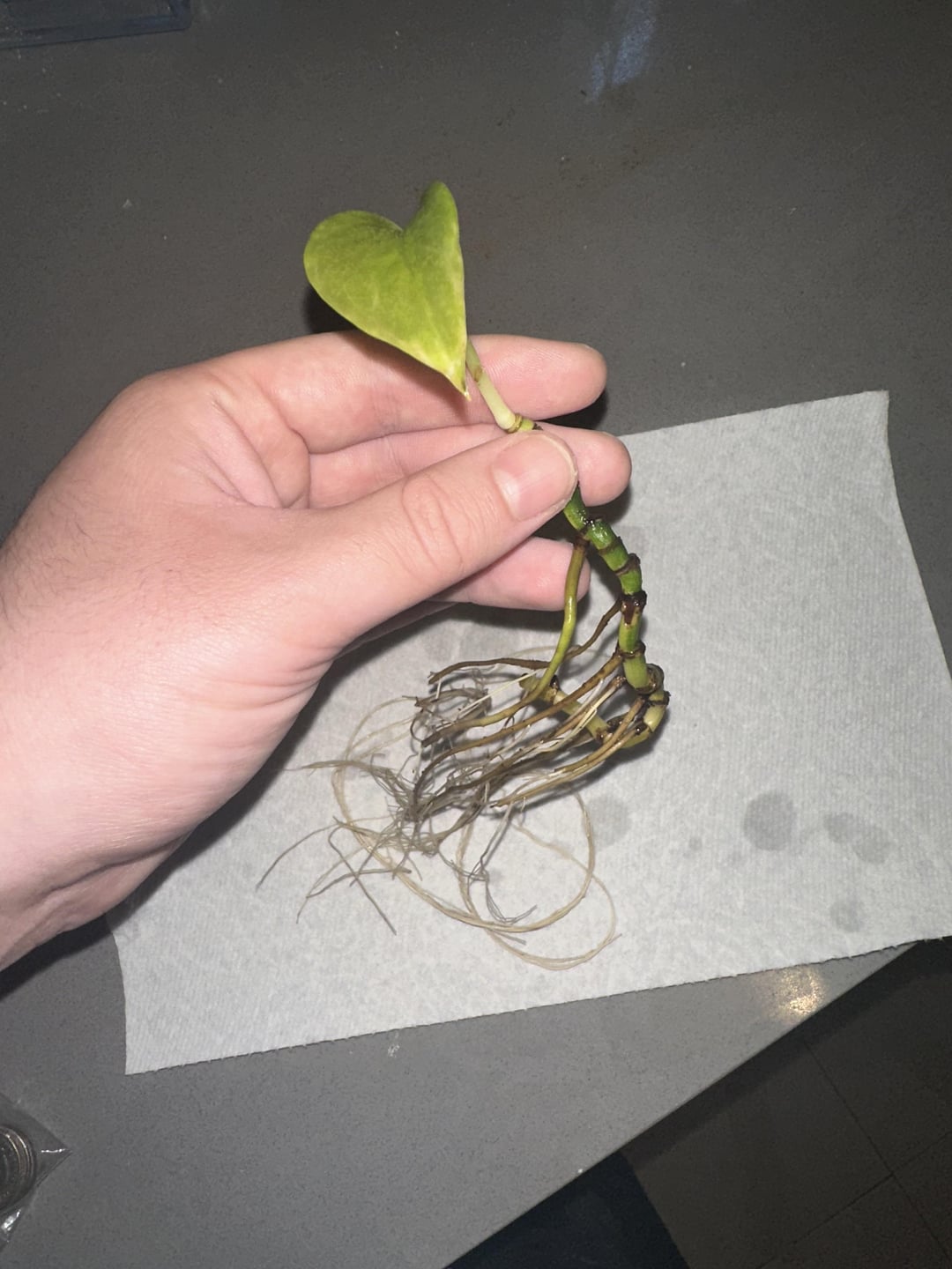 私はそれを洗って、不健康な見た目の根を脱いだ。それはポトスだと思いますが、idkです