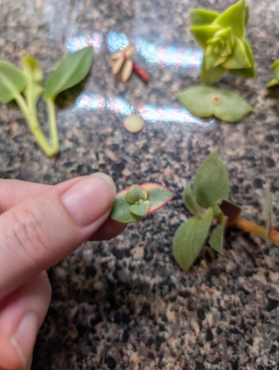多肉植物の土壌を装着するために私が知っている2つの通常の多肉植物の葉は、多肉植物の多くのランダムな事前にすっごく手に入れました。隣のことは、涙の植物と呼ばれるものから来たと思います。 "共有するのは楽しい" だから私はそれが簡単に架かるだろうと思った。私はそれが何であるかわからないが、私はそれが何であるかを知らないが、私は茎に5つの小さな葉と家に帰る途中で落ちた小さな葉でそれを持っている。次回はそれが何らかの一種の多肉植物だと確信していますが、どんな種類の手がかりがありません。私はそれを扱うだけで、それは通常の多肉植物のように倒れた葉です。最後に2つは同じことですが、私はそれを通常の多肉植物のように扱い、それを多肉植物の土壌に入れなければならないと思いますが、誰かがより良いアドバイスを持っているかもしれないと考えました。その下には、テッダークマのつるがあります。私はそれがTradescantiaと同じ方法で支えていると確信していますが、私が間違っている場合は私を修正してください。最後の小さなことは、私がもう一つのタイプの多肉植物だと思うのは、私の行く方法は他と同じだろうが、アドバイスがあれば教えてください。
