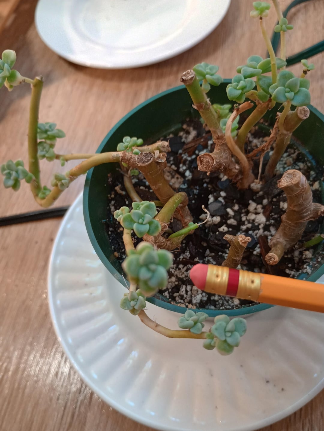 これらはまだ小さすぎますか? (大きさの比較のために鉛筆を示しています)また、茎を残す必要がありますか、それともロゼットを土の上に置くだけでよいですか? 私はいつも茎を残していますが、これらの中には十分な長さの茎がないものもあります。 葉の先端の一部が青くなっている原因は何かわかりますか? 水没? ライトの下にあります。植物は入手したときは脚が長かったので、小道具として使用しています。 THX!