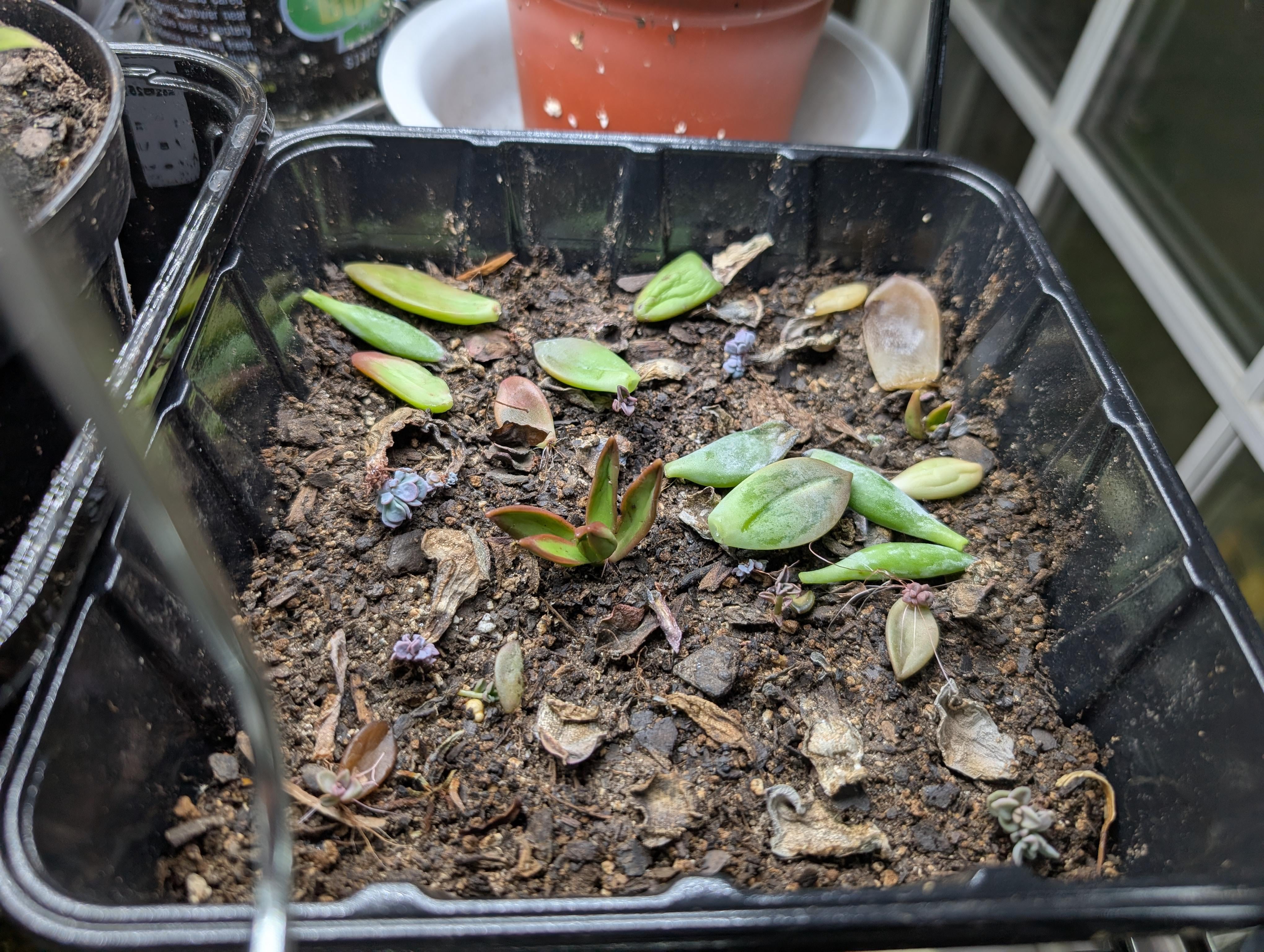 私は一年中少し多肉植物の葉を支えてきましたが、私がわからないことは、彼らが最後に小さな植物を栽培した後、彼らをどうするかです。新しいポットに移した後、彼らはちょっと枯れているように感じます。彼らが十分な水を持っていないからですか?彼らは特別なケアや植え付け方法が必要ですか?