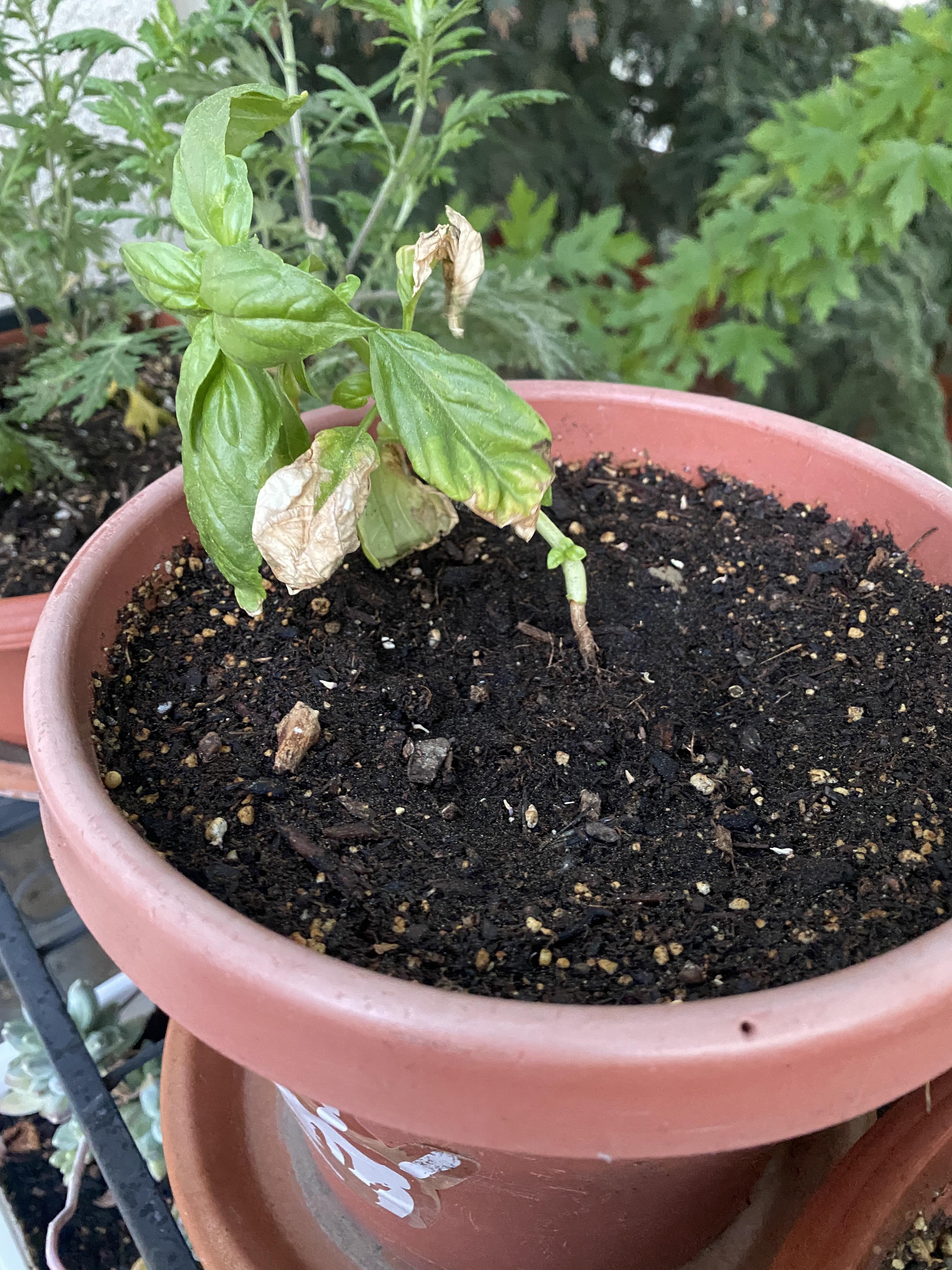 それはただ小さな葉を成長させましたが、あまり良く見えません。そこにあるものを収穫する必要がありますか、それともまだ成長する可能性がありますか?ベースが腐っているか何かのように見えますが、私は間違っていることを望んでいます。