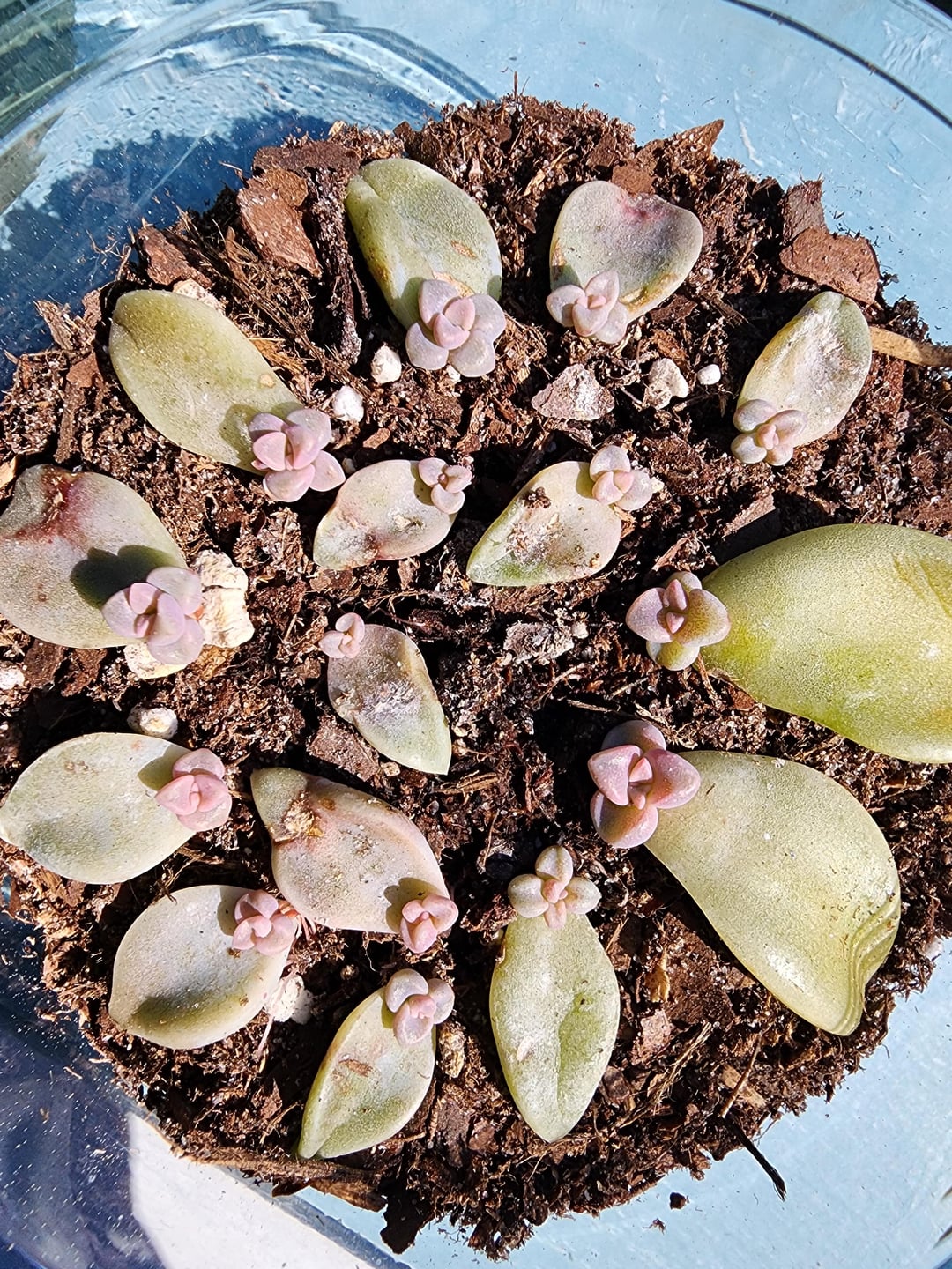これが成長するにつれてどのように見えるかを見るのが楽しみです。 1つのペダルは3つが1つになったように見えます。 私がこれをやらせたのはこれが初めてで、この幽霊の植物から地獄を支えました。 プロップを初めて使用する場合は、グラプトペタルム パラグアイエンセを購入することを強くお勧めします。 グリーンサム博士のような気分になれます。 最後の写真は普通に見えるもののバッチです。