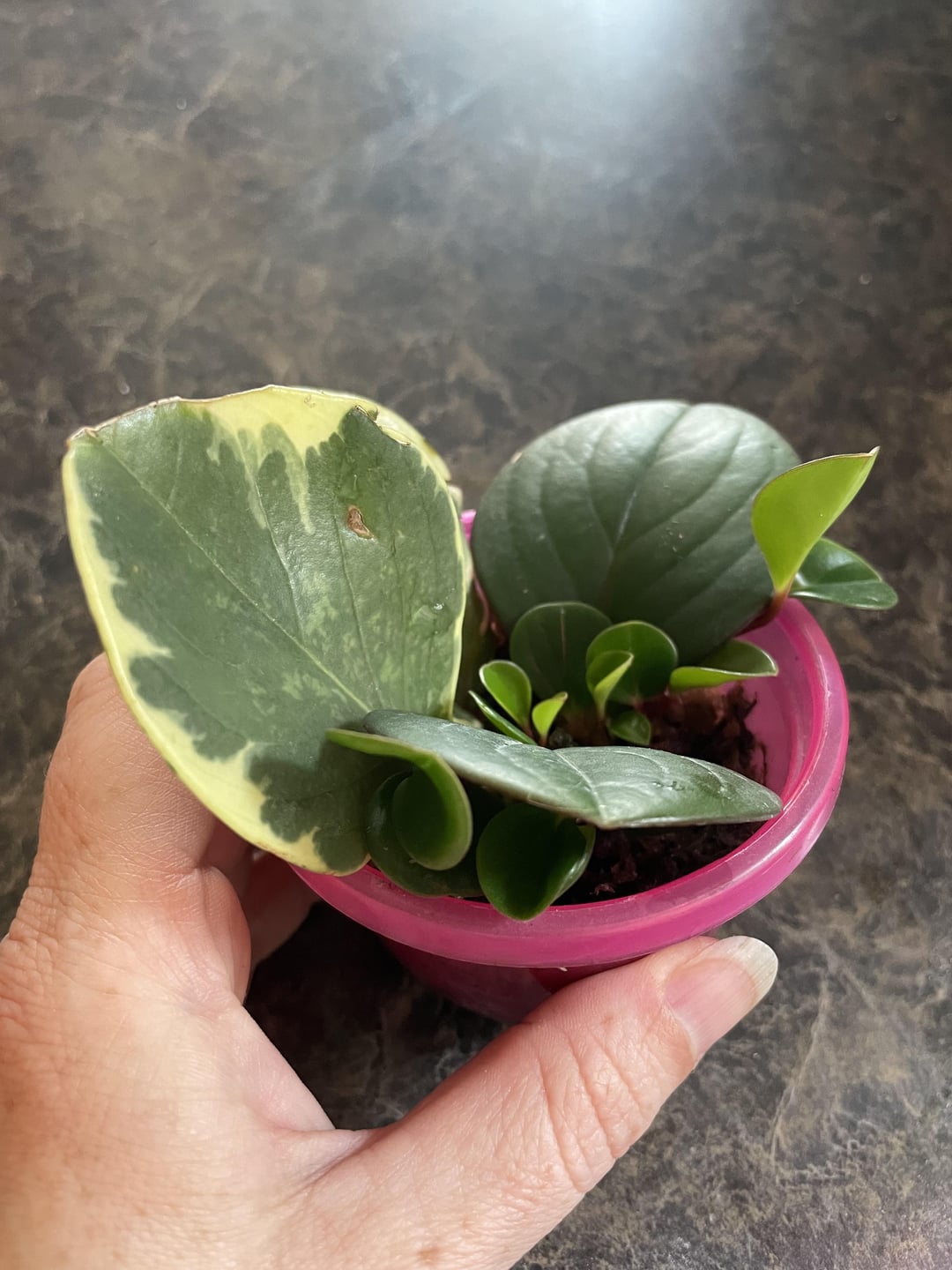 店の棚で見つけたペペロミアのピースが成功しました。 たぶん6ヶ月くらい経ったと思います。 ミズゴケの中に入っていますが、近々植え替える予定です。