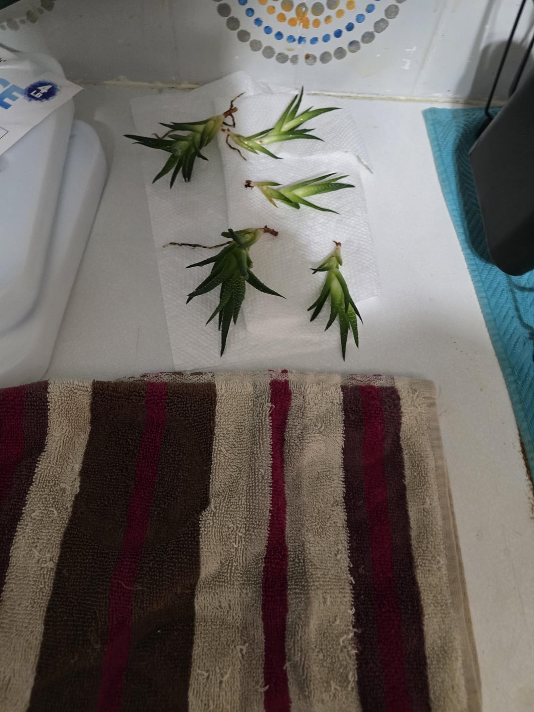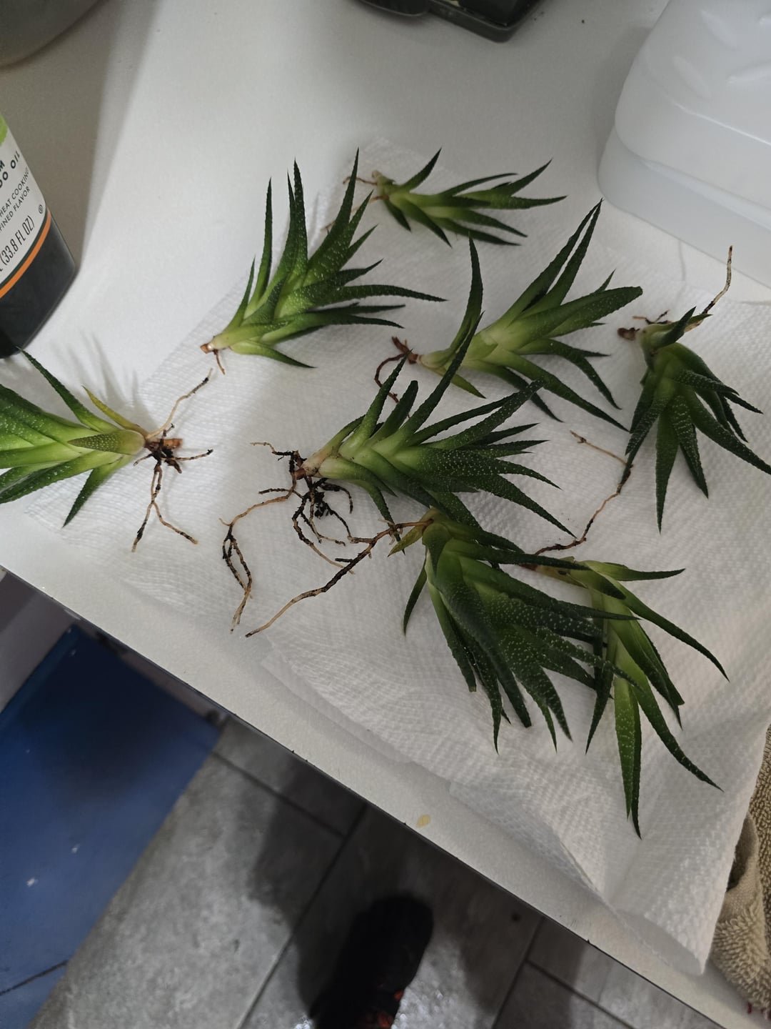 私の母は私に彼女がもう欲しくないハワルシアをくれました。彼女がこのことをどれくらい持っているのかわかりません。私は15の小道具を引き出しました。かなりの量のルートダメージがありますが、メインがスルーすると思います。特に今では、他の15のフルサイズの植物を引いたものです。小道具のほとんどは、植えるのに十分なルーツで脱落しました。かなり幸せです。