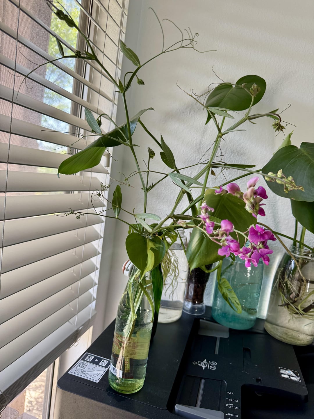 紫と白の花のようなクリーパーが私の(HOAの)裏庭を引き継いでいます、私はそれらを掘り、私が彼らに水を合わせることができるかどうかを見るつもりです