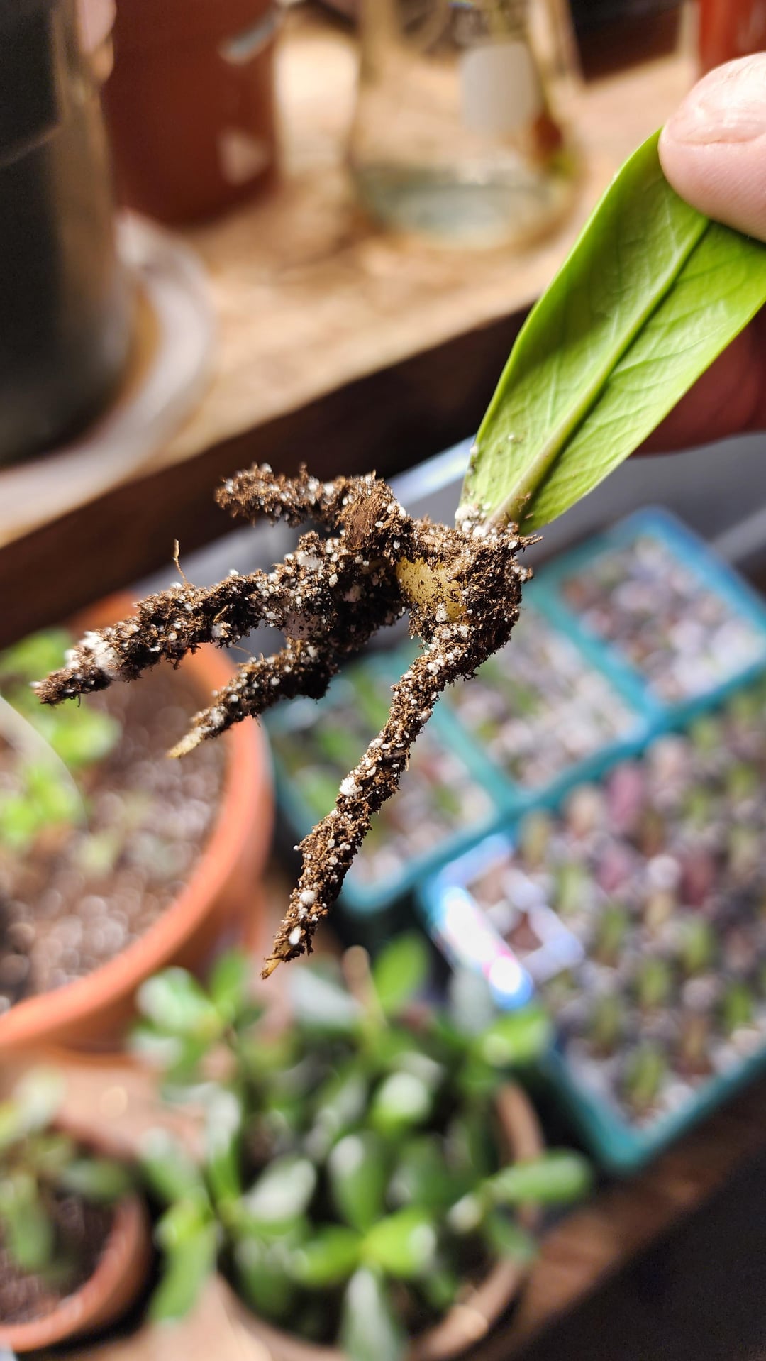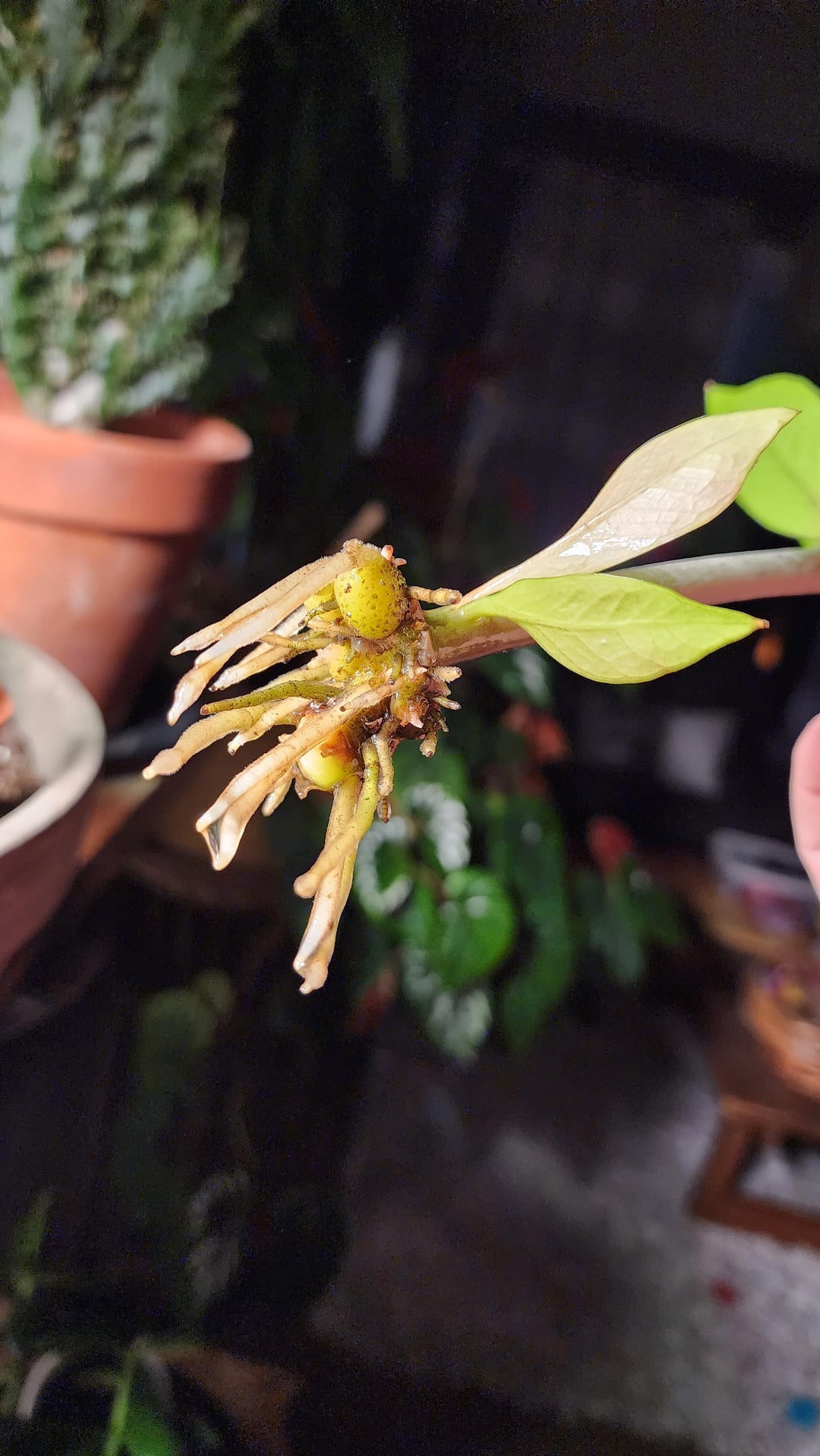 私は写真のために意図的にいくつかの上の土壌を取り除きました….葉によって私の最初の写真はクリスマスの周りです…そして茎の切断からのものは14個以上のマウントです….最終的に撮影するヒント….暗闇、圧倒的な成長ランプ、寒い夜、トロピカル湿気、いじめ?