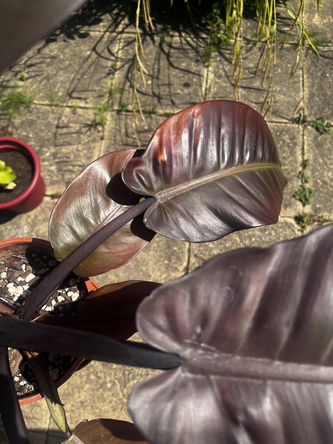 私の黒い枢機inalは私の最高の植物でした!!それは決してうるさいことではありませんでしたが、最近の時点では次第に悲しいように見えます。オレンジ色の斑点は日焼けだったと確信していましたが、今では植物全体がオレンジ色になっており、不幸だと心配しています。そして、お尻の葉全体が葉柄なしで落ちましたか?何かアイデア?今年の夏は塗り替えられていなかったので、水をまきます。太陽が燃えた後、私のコンサバトリーからそれを持ち込みましたが、助けにならなかったので、太陽/熱の問題だとは思わないでください