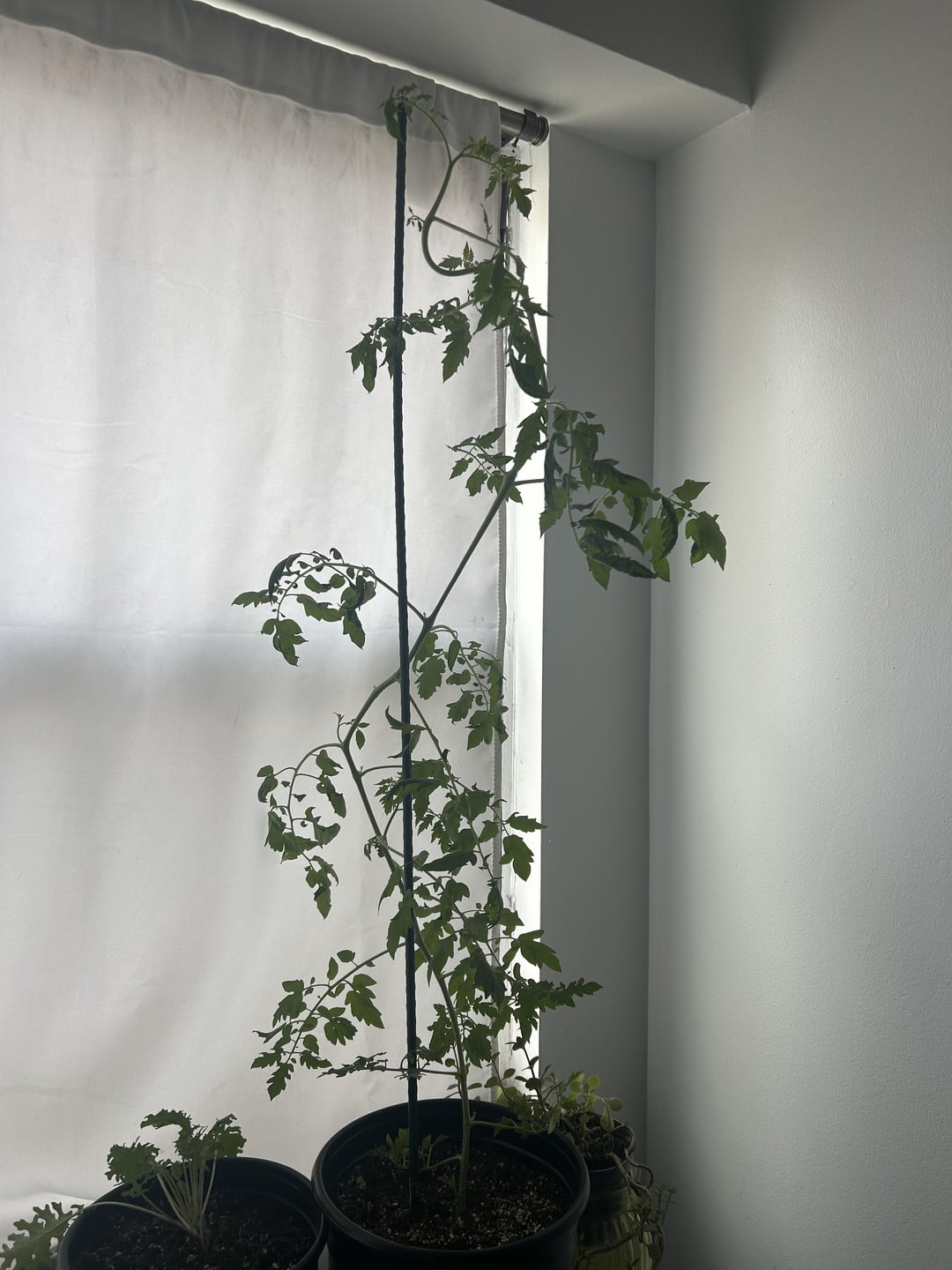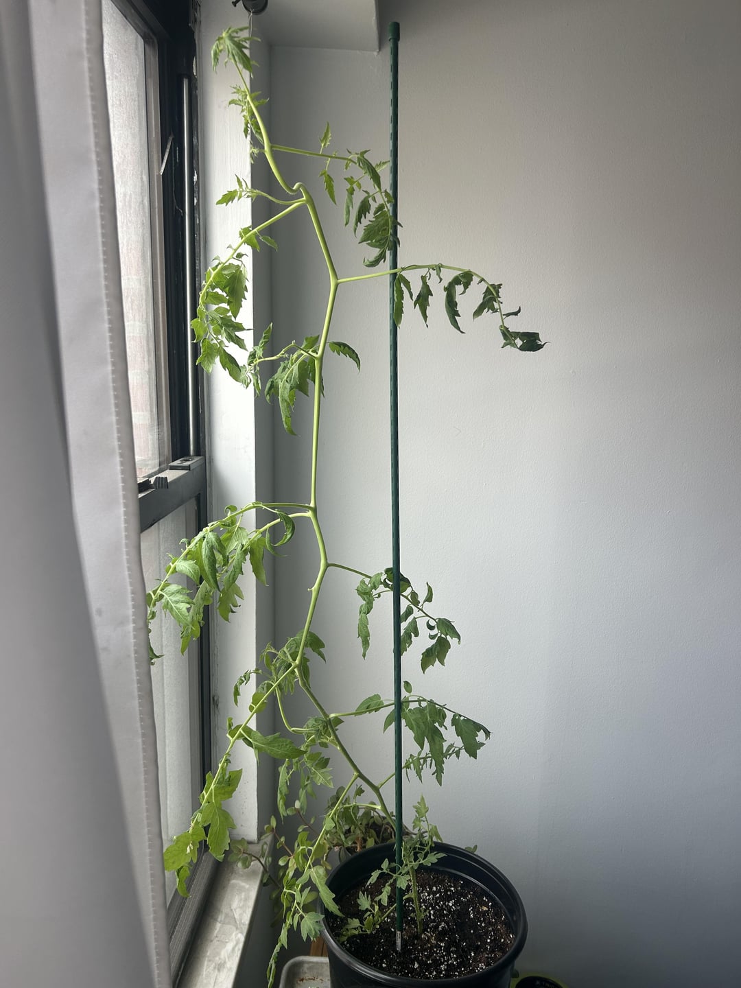 彼女を苗として買って、数週間、この大きな(直径10ポット)ポットで私の寝室で屋内で育てていました。彼女は大きく成長していますが、今では葉は一種の垂れ下がっており、茎は数回にわたって落ちています/それ自体で我慢できません。私は彼女を支えるための賭け金を持っています、私は彼女に数日ごとに大量に水をまき、土壌を湿らせ、仕事中に日光のためにカーテンを開きます(東に向かって窓がありますが、大きな通りに)。私はコンテキストのためにニューヨークに住んでいます。トマトケージを手に入れる必要がありますか?肥料?私は何が間違っているのですか?私の寝室でトマトをすぐに手に入れたいですlmao…。ありがとう!!!