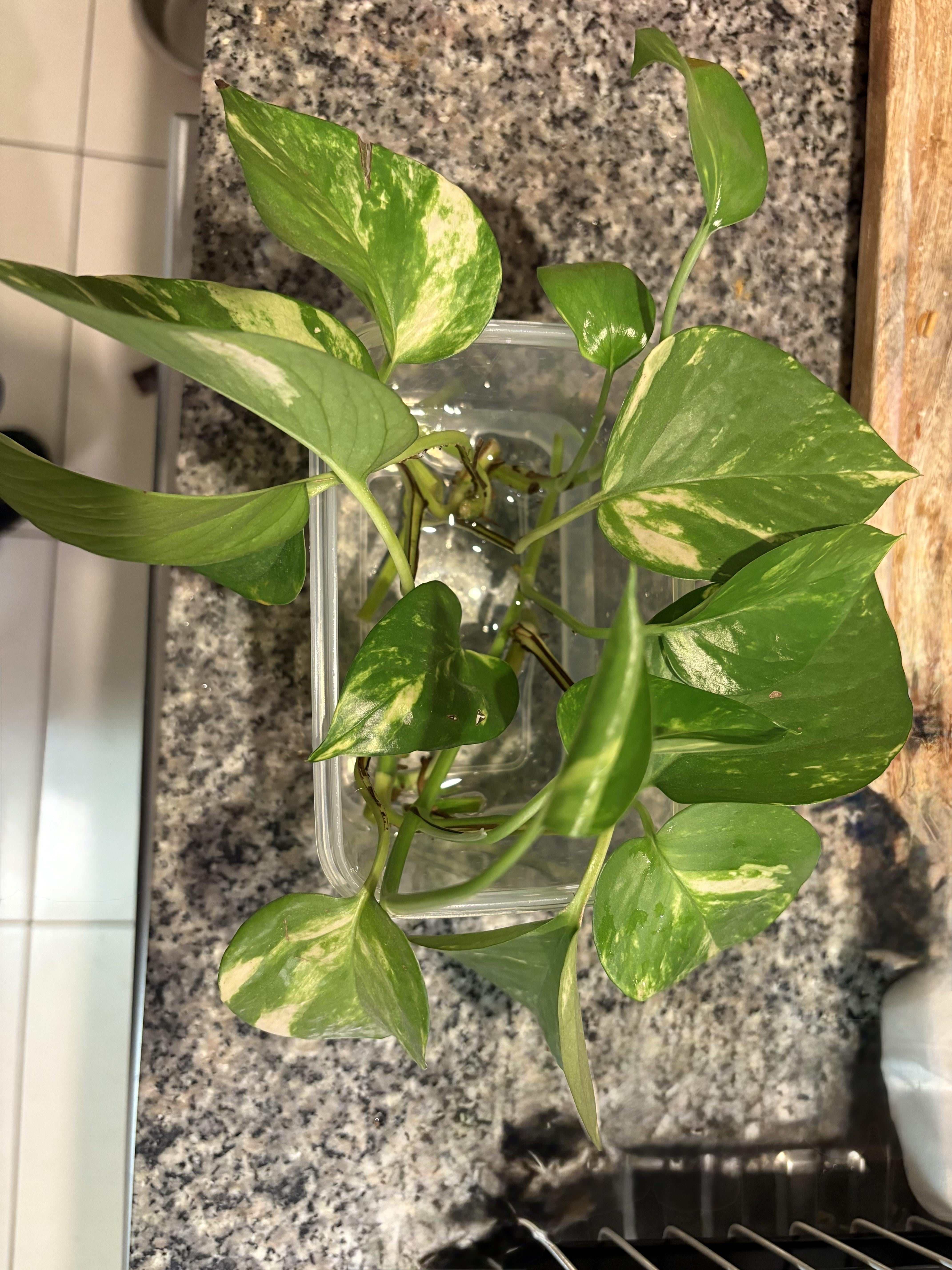 私は大きなポトスぶどうの休憩を持っていました、そして私はすでにそれをトリミングすることをすでに考えていたので、私はなぜファンニーのために多彩なセクションのいくつかを伝播しないと考えました