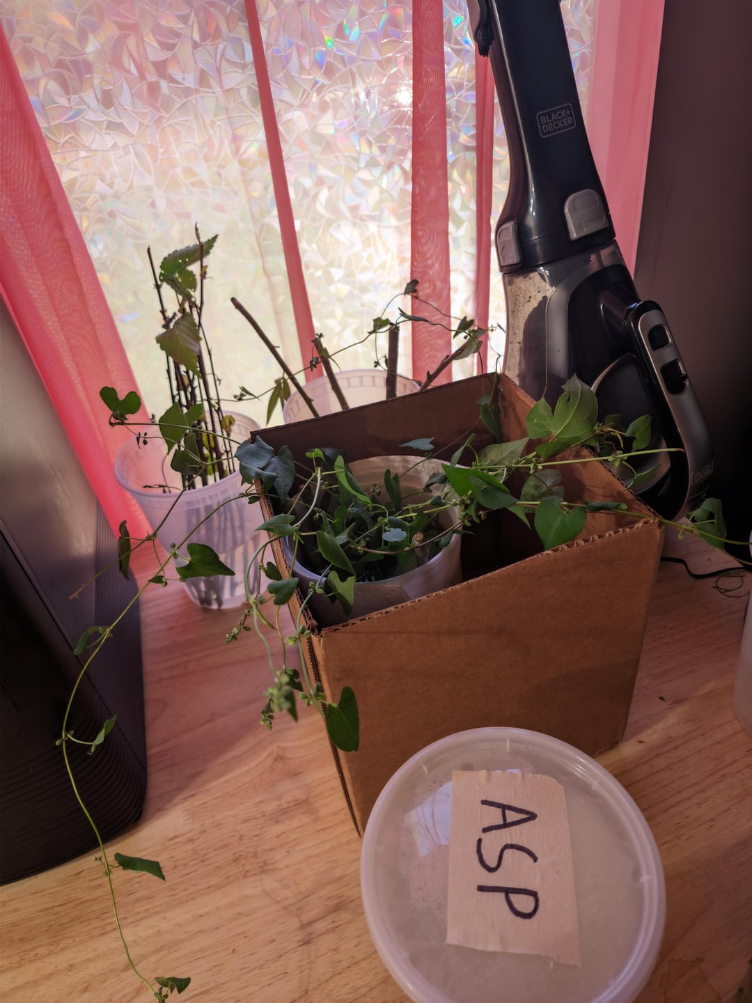 私が持っている昆虫の囲いにそれらを使用するつもりです。私はそれらをいくつかの柳の水に浸した後、それらを処理した通常の水に移して浸しました。 Bindweedの一般名を共有しているにもかかわらず、これらの小さなブドウは非常に丈夫で、それほど丈夫ではないようです。私はほとんどの根を無傷で移植しようとしましたが、それは非常にひどくしおれています。