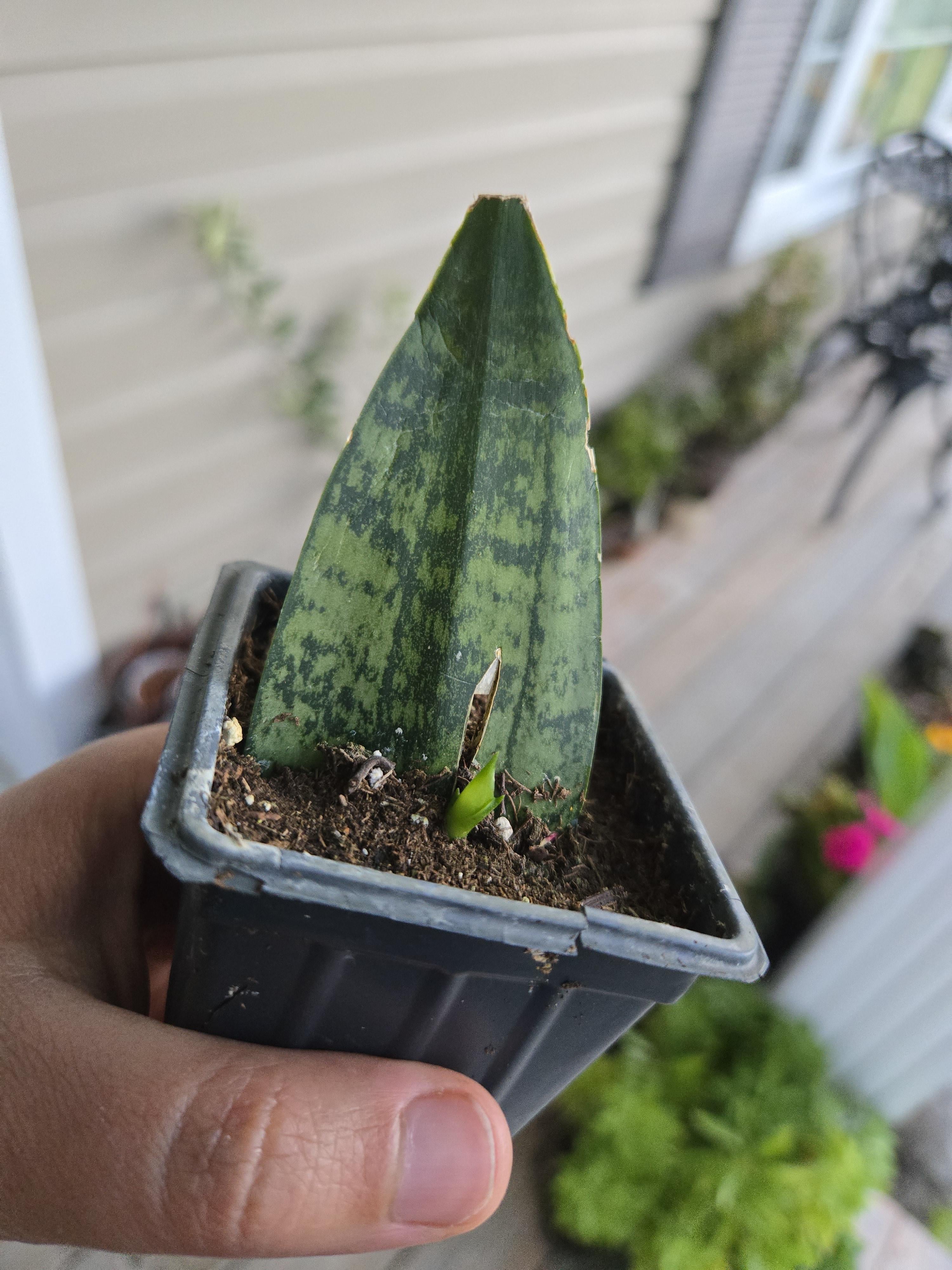 私は約6か月前にウォルマートの床でこのヘビ植物を見つけましたが、ついに人生の兆候を示しています。わーい!