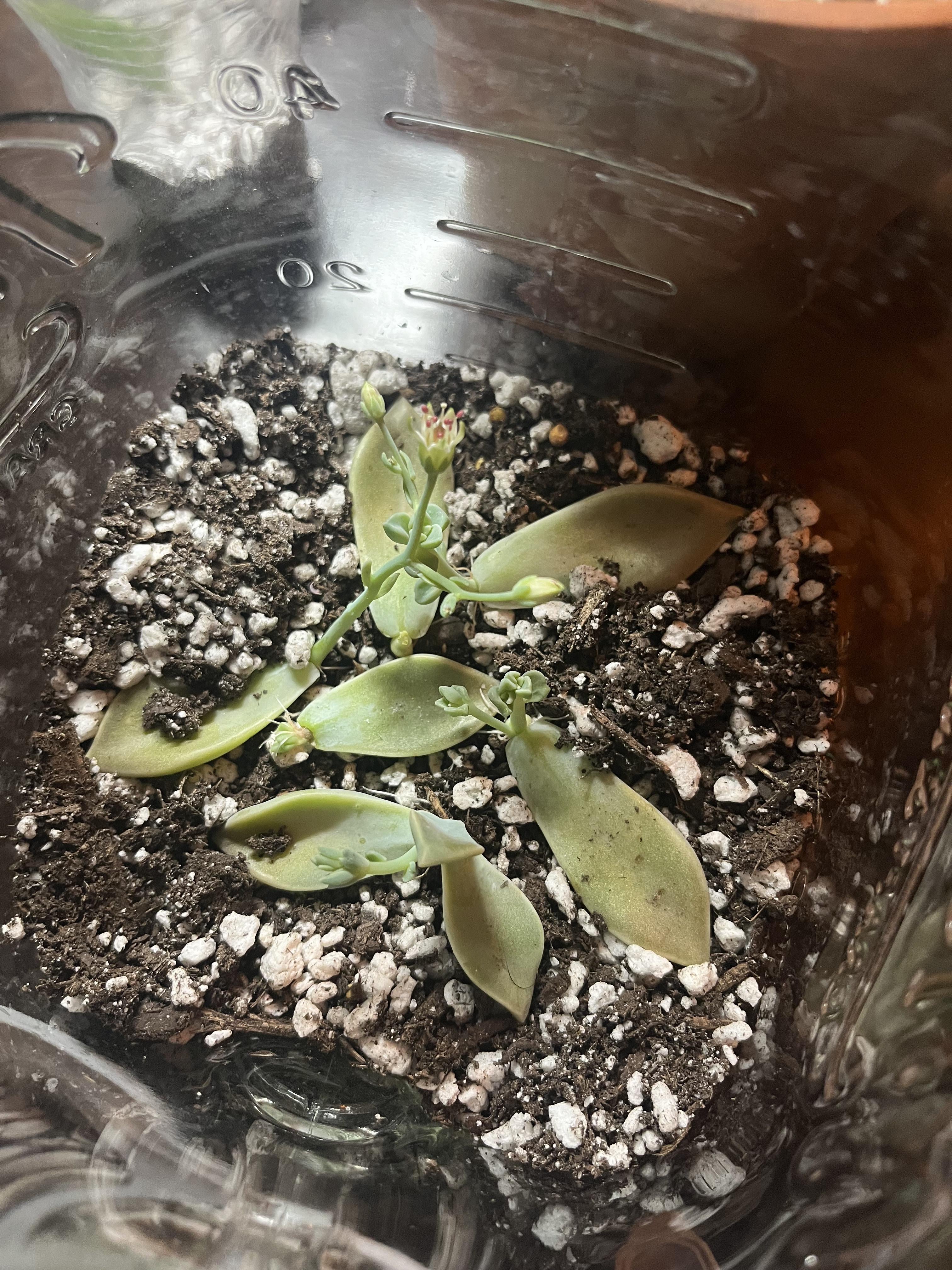 初めて増やした植物。 こんなに小さいうちに花が咲くとは知りませんでした。 さらに数名がこれに続いています。 様子を見るために瓶に入れたままにしておくべきでしょうか、それとも鉢に移すべきでしょうか?