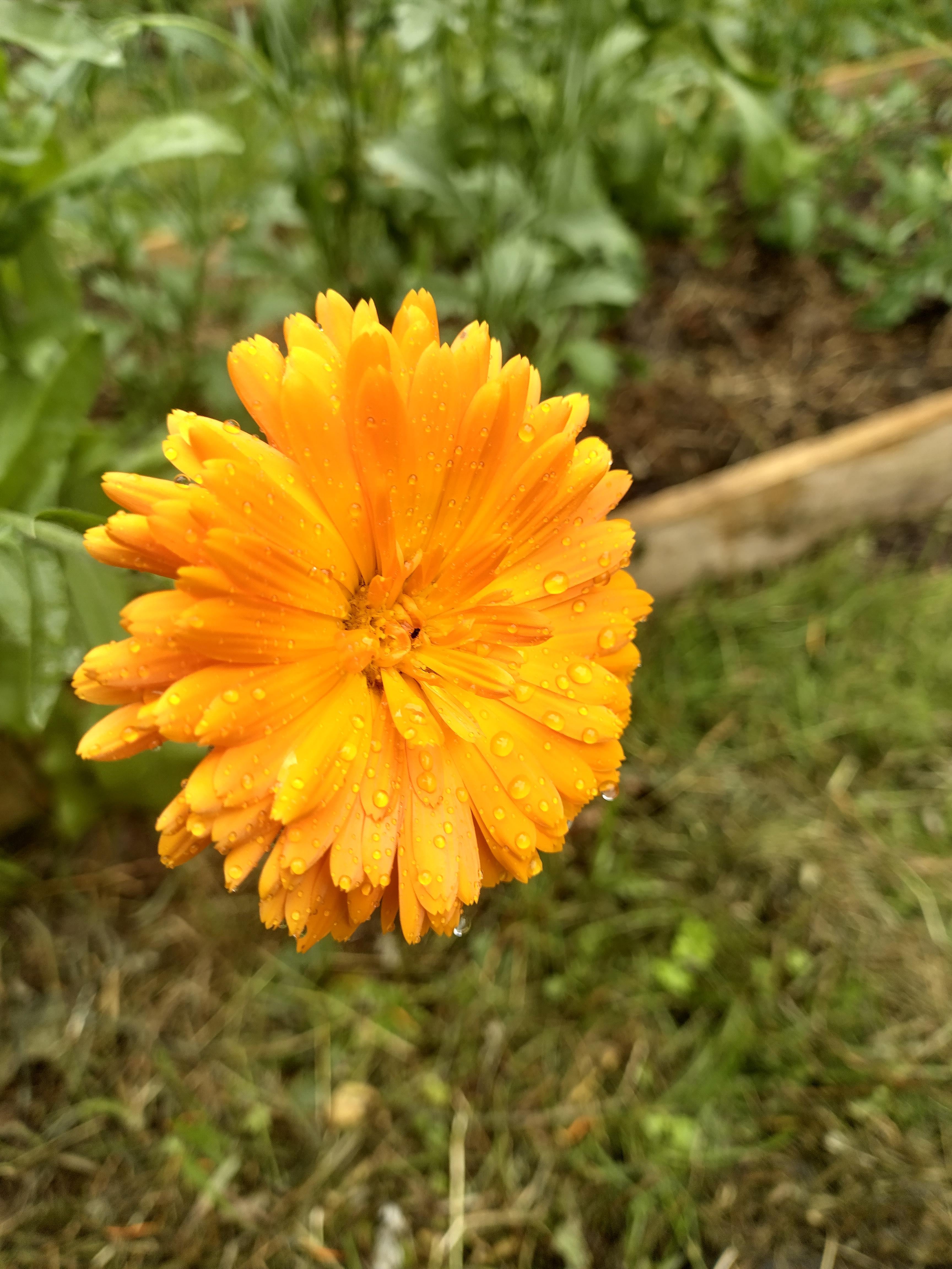 緑と成長を続けるマスタード、チリ、スカッシュの庭