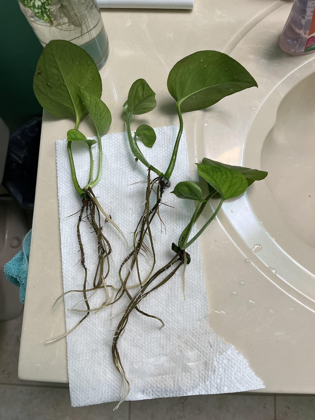 私は最近、6つのポトスの小道具を、5インチまたは6インチのポットで1:1:1の土壌、蘭の樹皮、パーライトにポットしました。私は私の小道具を水に入れて、彼らが彼らを土に置くために二次根を発達させるまで待っていました。私は週に一度それらを底に水をまき、彼らはラナイに取り付けられた南西に面した窓から約3 ‘に座ります。また、1日あたり10時間ほどの成長ライトの下にあります。各伝播は1つの新しい葉を出しましたが、それらはすべてわずかに黄色で細長いです。