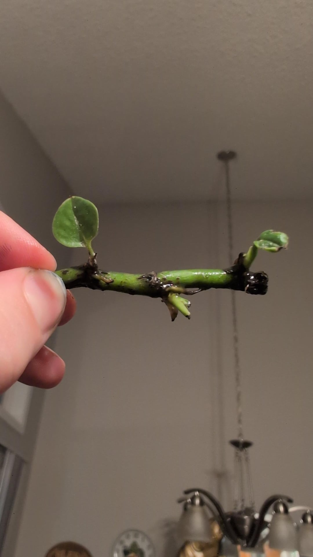 そのため、この男は通常のポトスの植民地として始まりましたが、私はそれを早く植えました、そしてそれは基本的にすべてが死んだと思います(これは私が提案した最初の植物の1つです。他のさまざまな種は鉢植えであり、他のポトスを含むすべてが非常によく成長しています)私はそれを地獄に固定しました。そして、それは芽生え始めましたか?そして、私はそれを独自の小さな皿に与えたので、それをぶつけて底に沈むことを心配する必要はありませんでした。それは数週間経ち、成長を続け、葉を消し続けますが、私が期待していたほど多くの/長い根はありませんでした。その真ん中の芽は最新です。