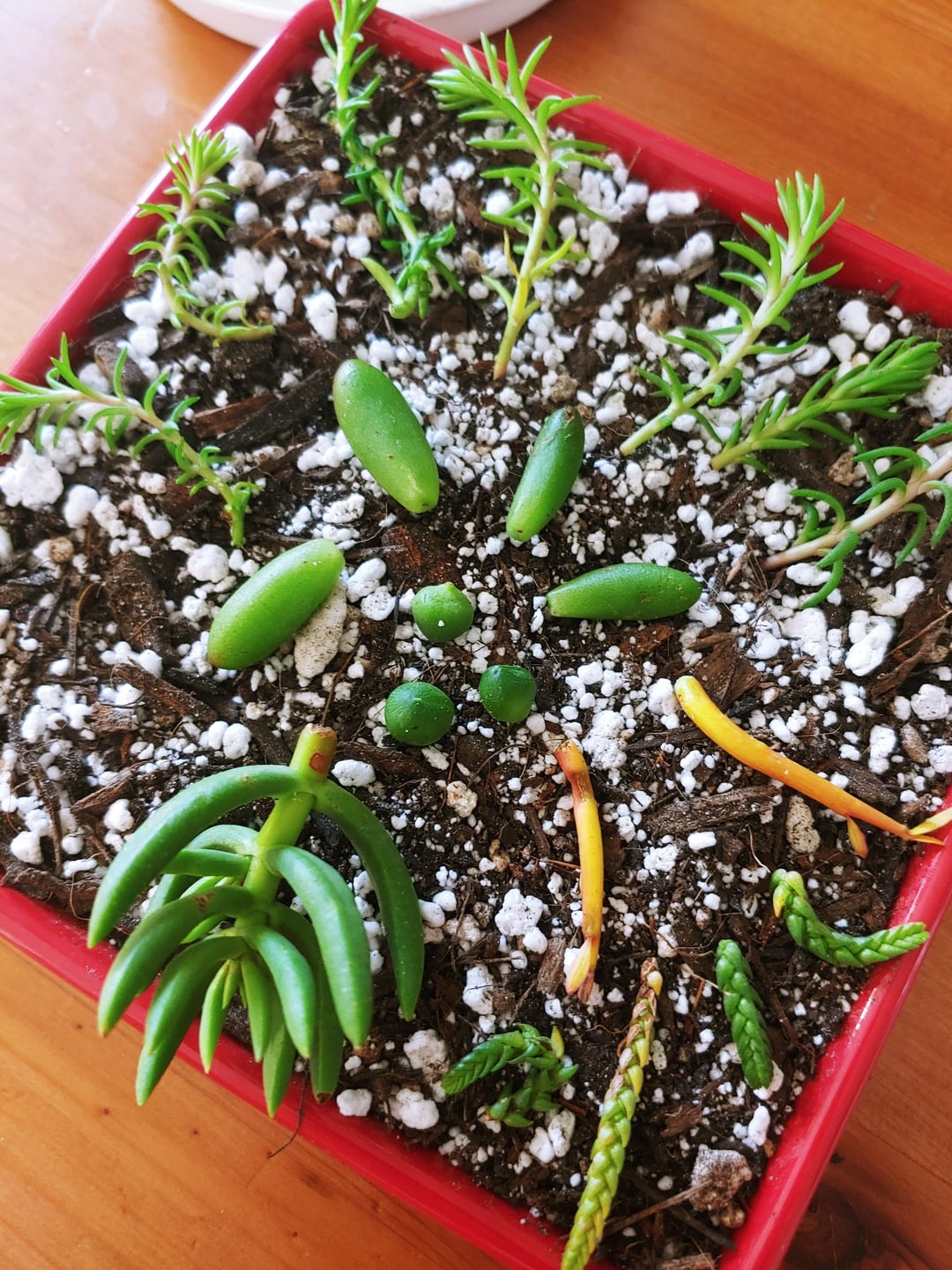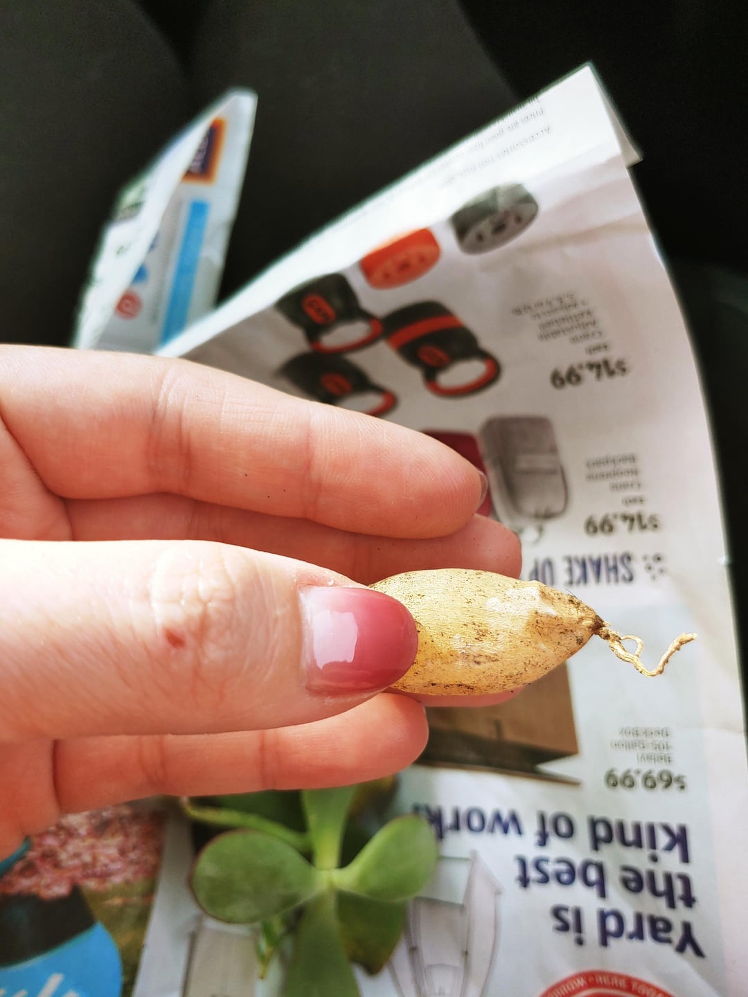この奇妙な球根か根が床に落ちていましたが、それが何であるかわかりません。 これを立ててもいいですか? この丸い真珠のような緑色の支柱も根付くでしょうか?