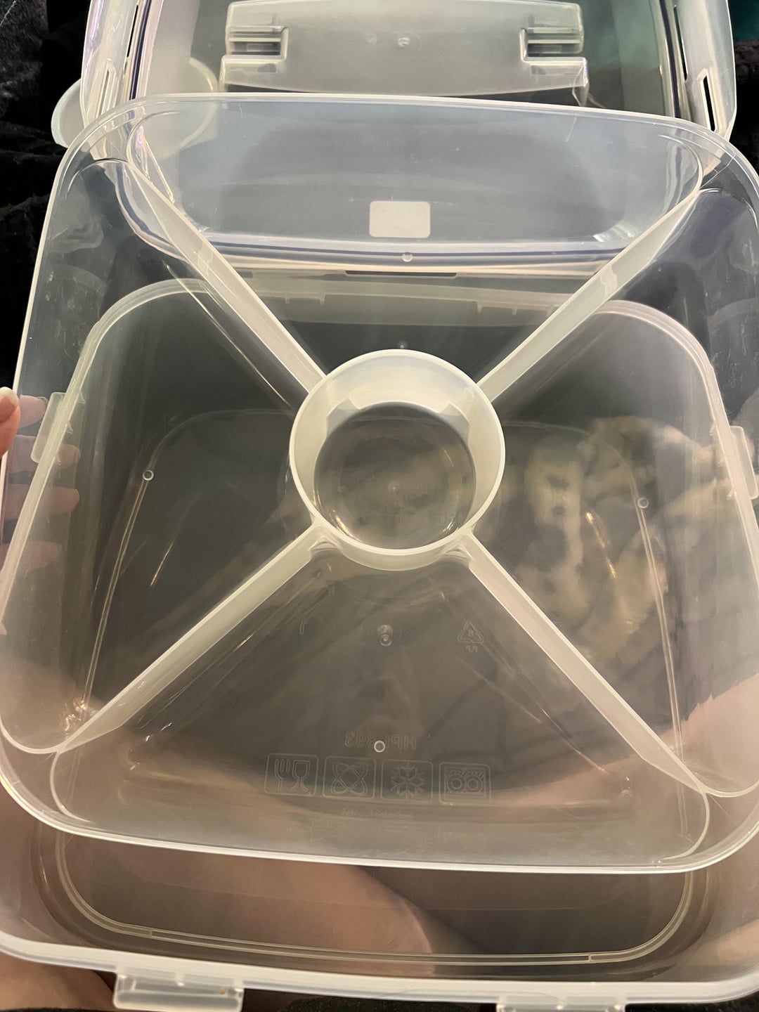 私はそれを見て、「今それはプロップボックスです!」と言いました。底が貯水池になり、4つの大きなセクションをポン、パーライト、ミニレカ、4番目にIDKにすることができると考えています。そして、私はプロップの小道具や水を簡単に補充できる中央のピースに穴を開けることを考えています。それは良い計画のように聞こえますか? IDKまだそれを使用する方法ですが、それは間違いなくプロップボックスになるでしょう!また、蓋が割れているので、わずか.99でそれを手に入れました。