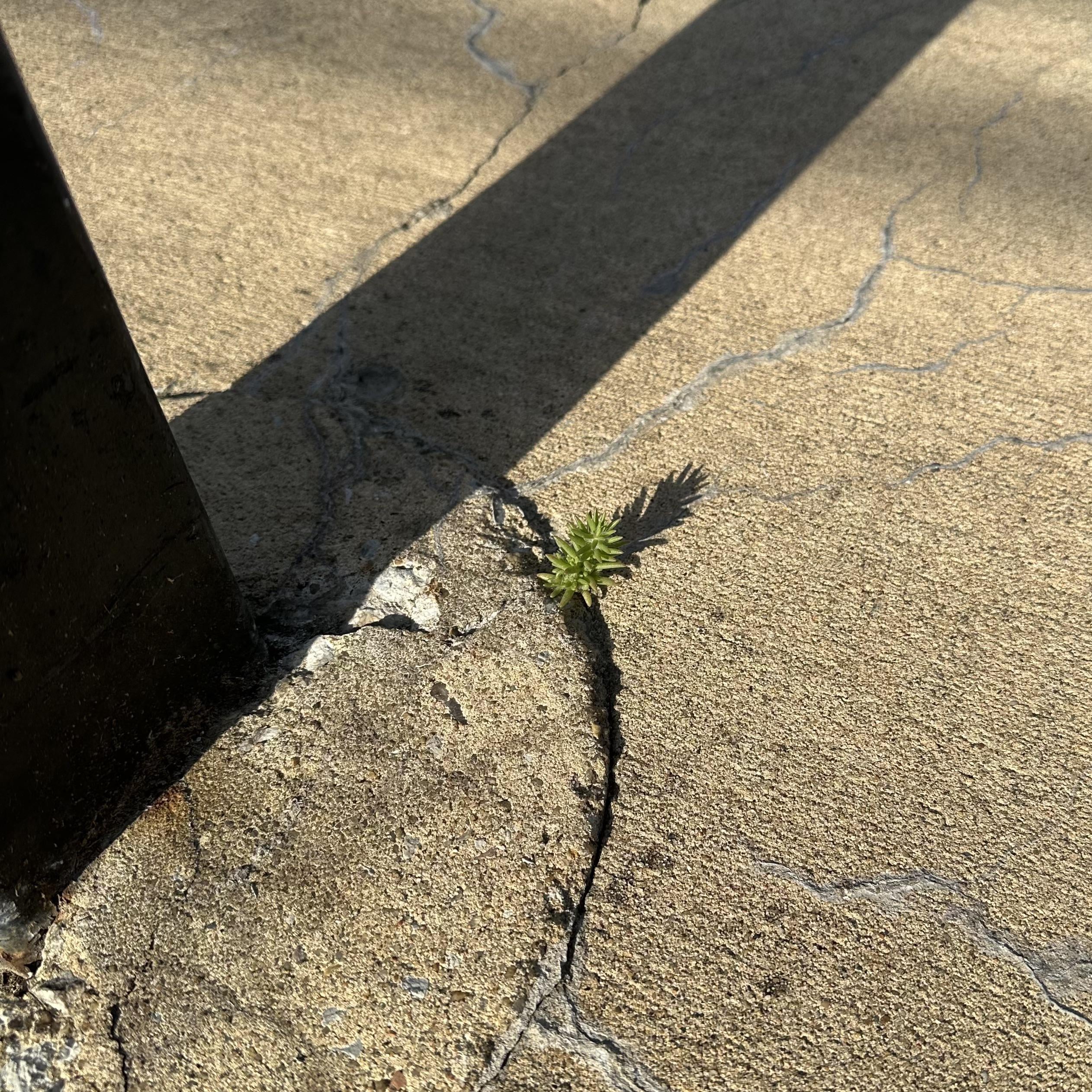 ウォルマートガーデンセンターセメント亀裂に根ざした多肉植物。 私はそれを残しましたが、私はこの小さな植物についてよく考えます。私はブルックリンで木を読んだことがありませんが、この小さな多肉植物は私にそうするように促しました。