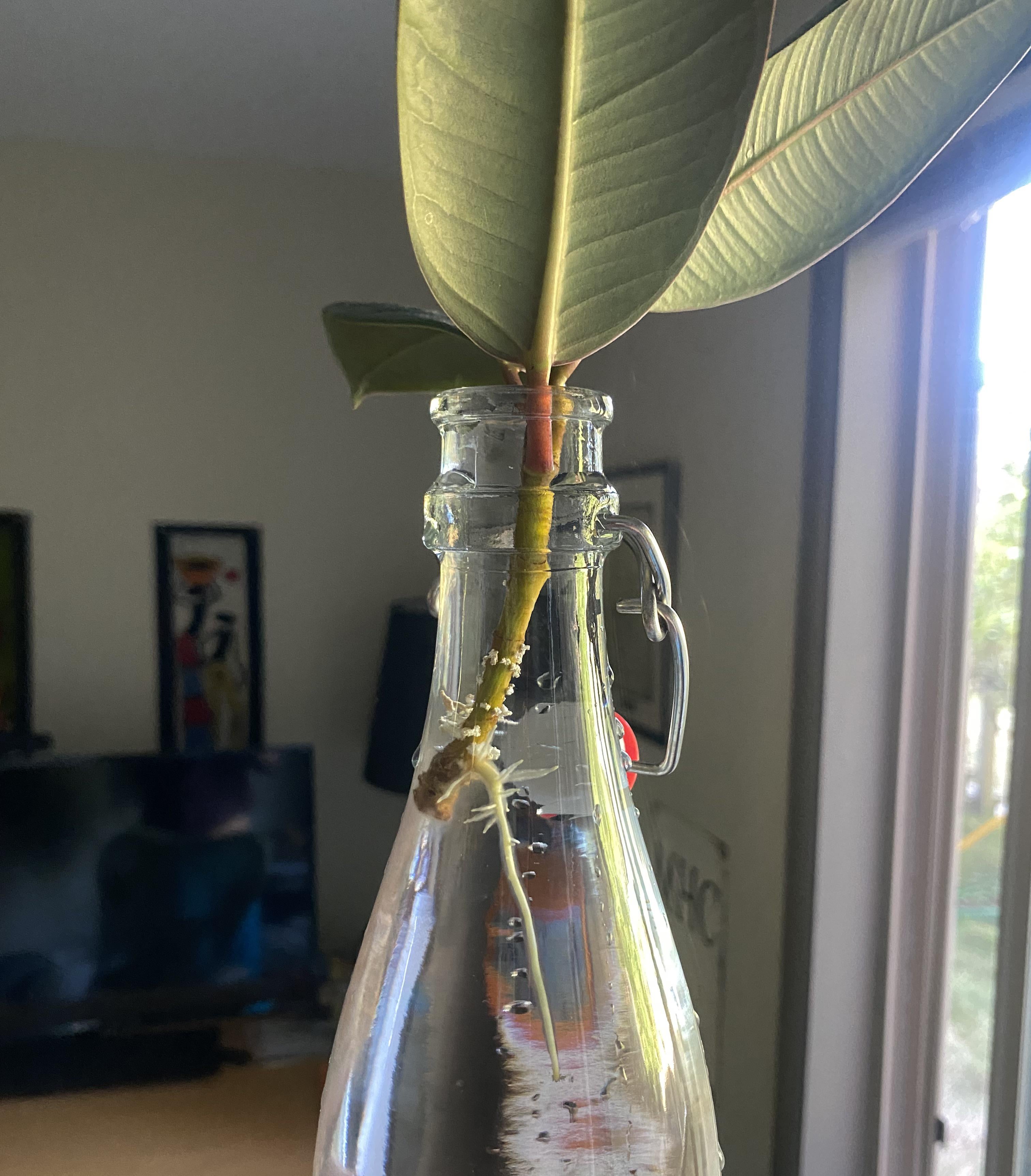 私はより多くのゴ​​ムの木の赤ちゃんのために戻るつもりです。私はそれらに水をまき、挿し木を取ることを許可されていますが、彼らは私にそれらを塗り替えさせません。根が母植物の上部からこぼれている方法を見ることができれば。それは悪魔的です!とにかく。おかげで私は前進しています!