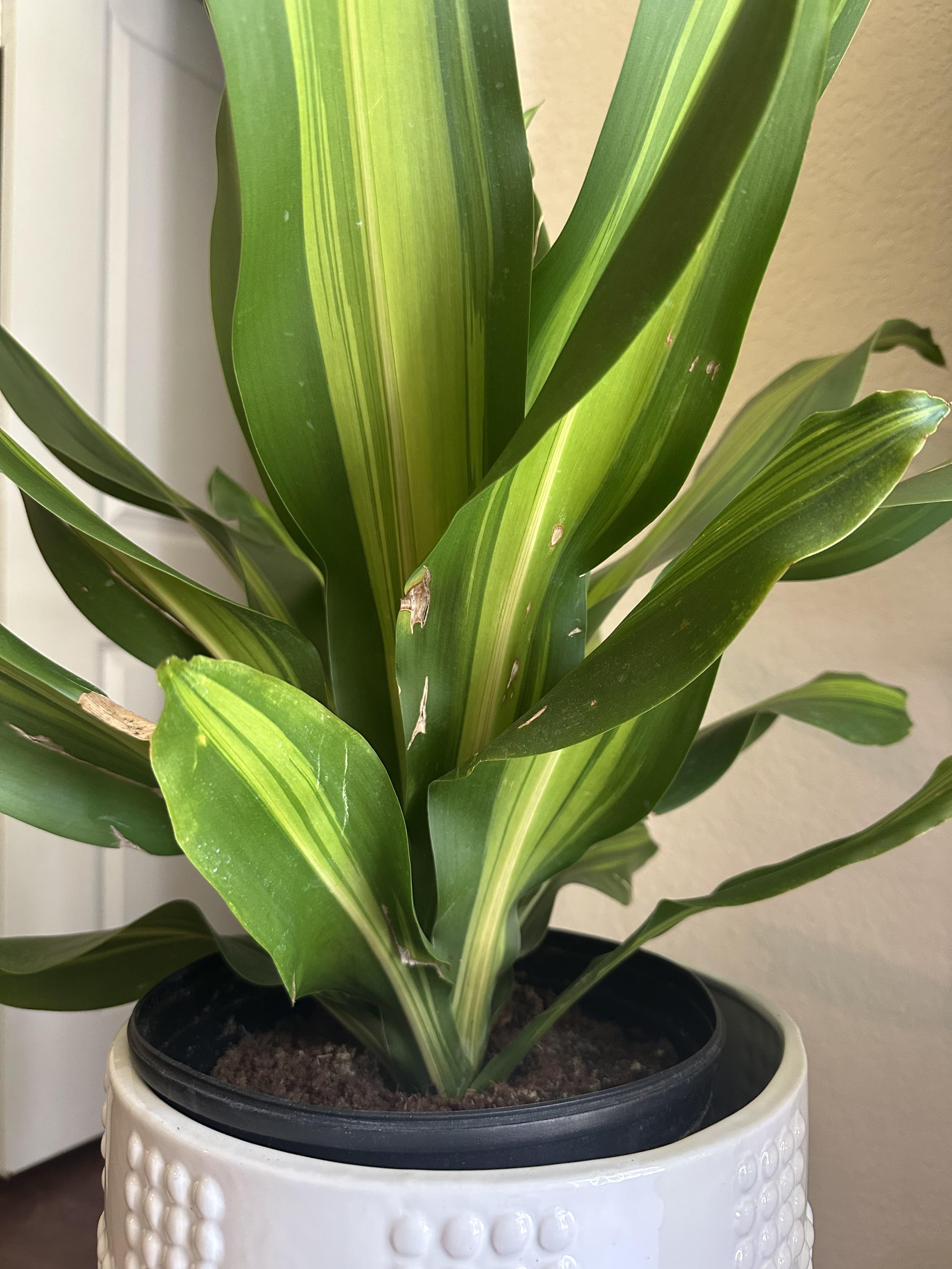 今年初めにこのゴールデンハートドラカナを手に入れました。大部分が繁栄し、新しい葉を伸ばしています。しかし、過去3週間にわたって、私は葉の茶色の斑点、傷、ひび割れ/切断にもっと多くの茶色の斑点を持っていることに気付きました。 1〜2週間ごとに水をやりますが、肥料や害虫の制御はありません。また、私は気づいており、鍋の底から出始めた小さな根もほとんどありません。これは私が心配し始めるべき問題ですか?塗り直す時ですか?情報やヒントは非常に高く評価されます!