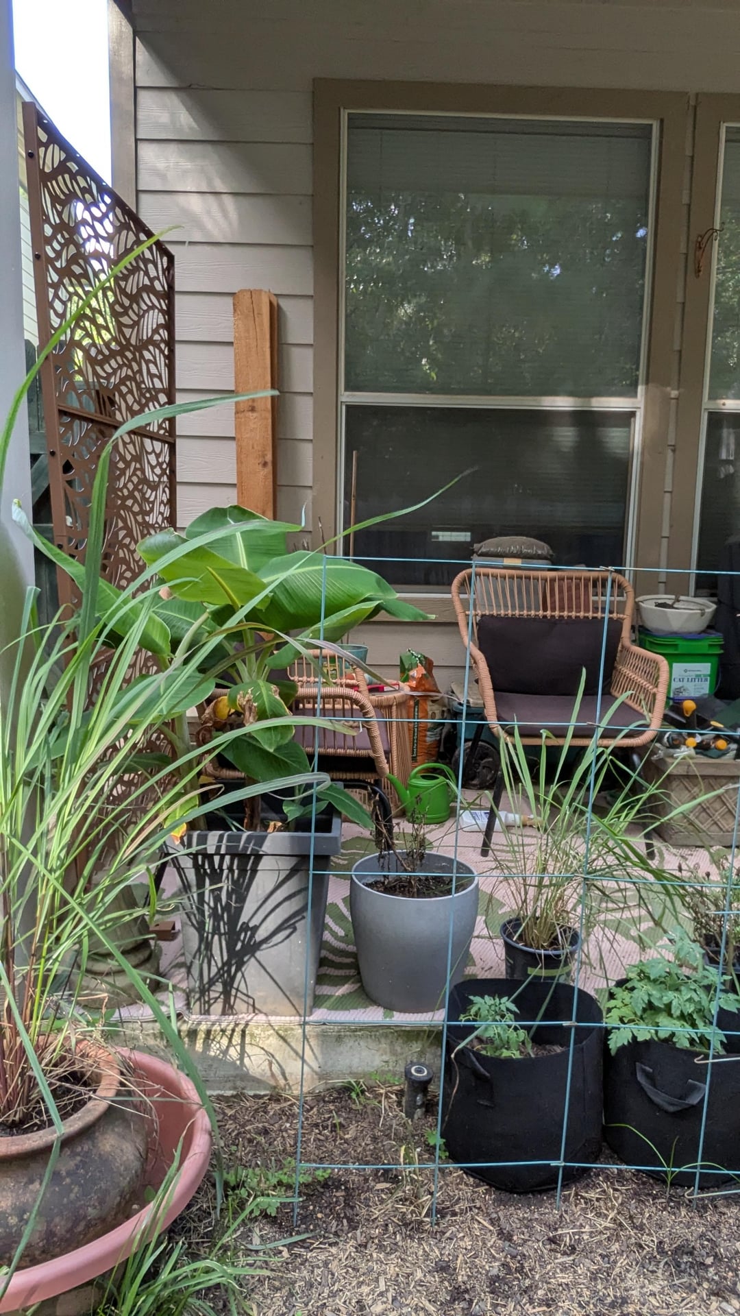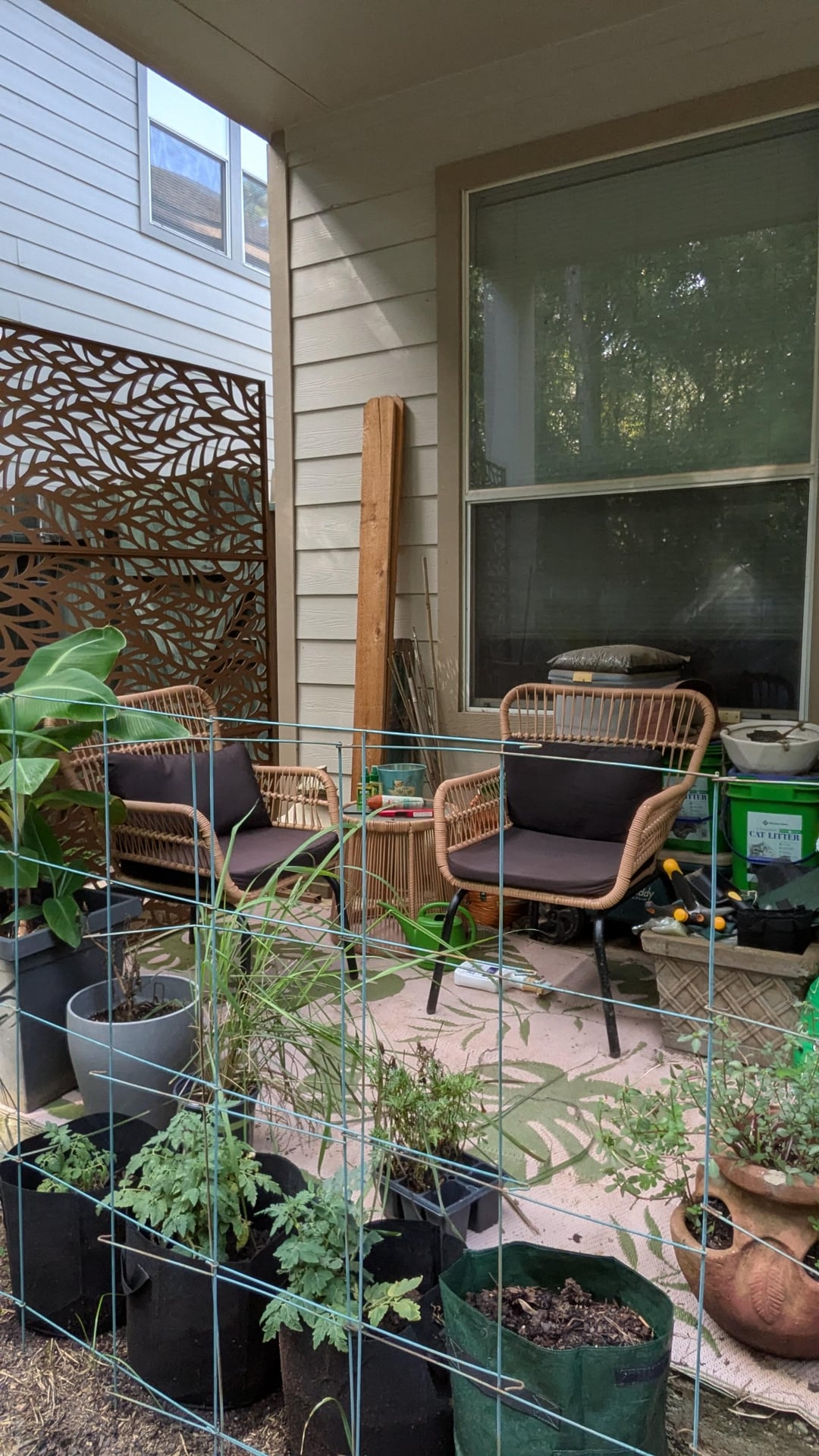 進化し続ける作業。技術的には内部ではなく覆われたパティオにありますが、それは私に平和な感覚を与え、それがどんなに暑くても静かな場所であり、庭の反対側は森林地帯に戻ります。