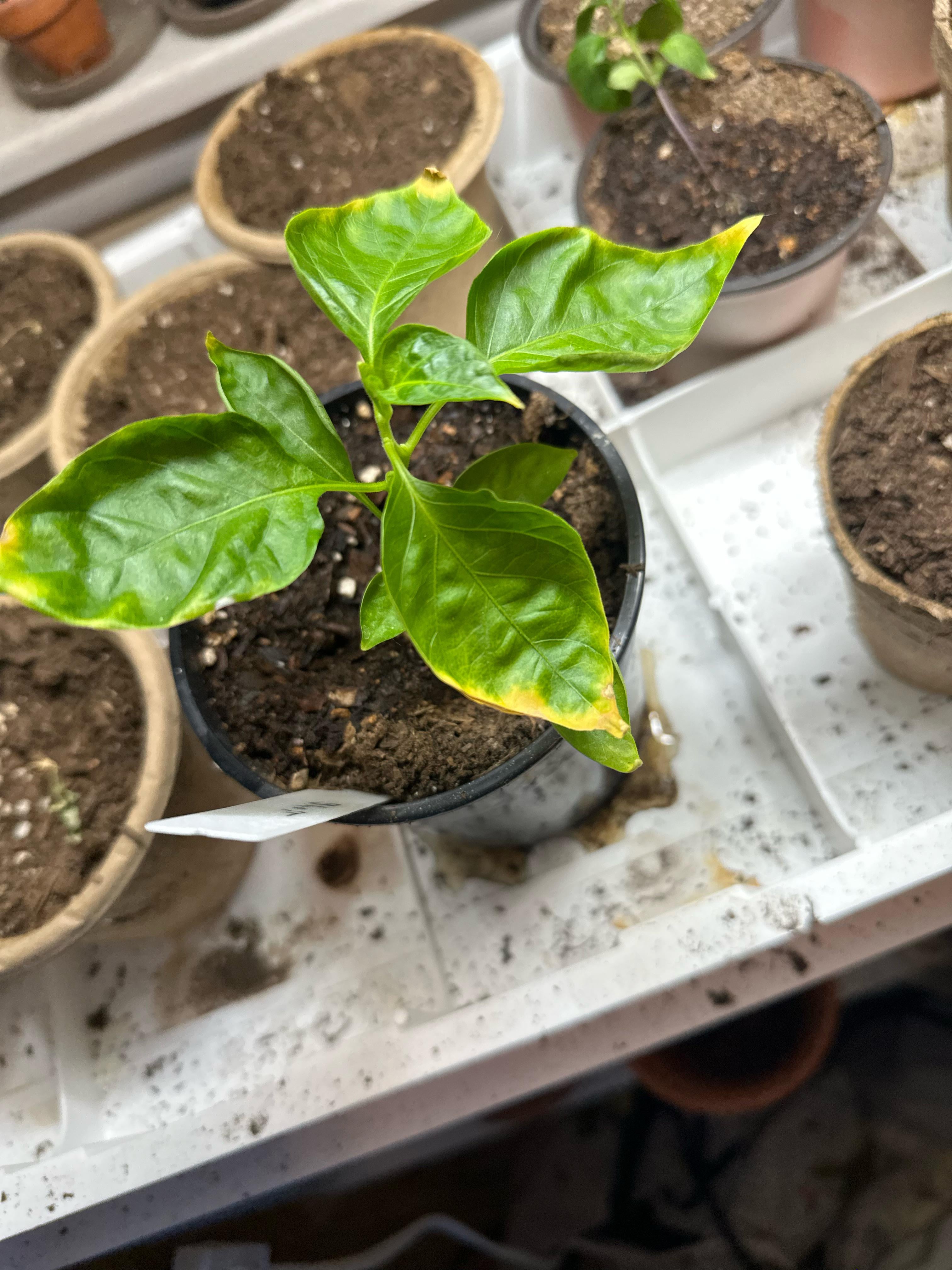 私はガーデニング(積極的には1年だけ)と屋内ガーデニングの両方に慣れていないので、これらは屋内ガーデニングでの私の最初の本当の試みです。私の最大のコショウ植物は写真に見られるように黄色に変わり始めています。