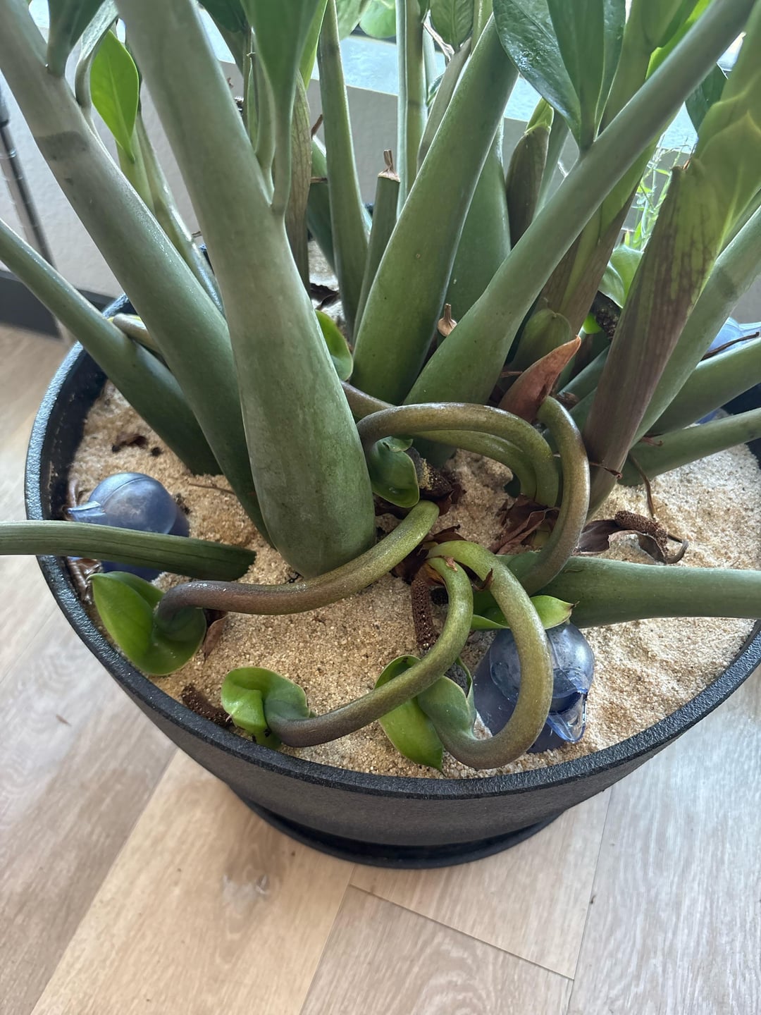 みなさん、こんにちは!私はこのZZプラントをおそらく3年半栽培しており、高さ約5インチでカウンターで始まりました。それ以来、はるかに大きなプランターにアップグレードされており、今では上部の土壌からの最高の枝で4〜5フィートの高さです。それは一般的にかなり健康でした。私は間違いなく窓を開けてから残業しているバグの侵略者をいくつか持っていましたが、それが行う開花量が正常かどうかを知りたかったのです。それは屋内の植物であり、常にこの程度のZZ植物が花を咲かせているのを見ていません。現在、咲いて倒れた7つの花があります。これは多すぎますか?私はまったく植物の専門家ではありませんが、開花することが良い面も悪いことも悪いこともできるという談話をオンラインで見てきました。