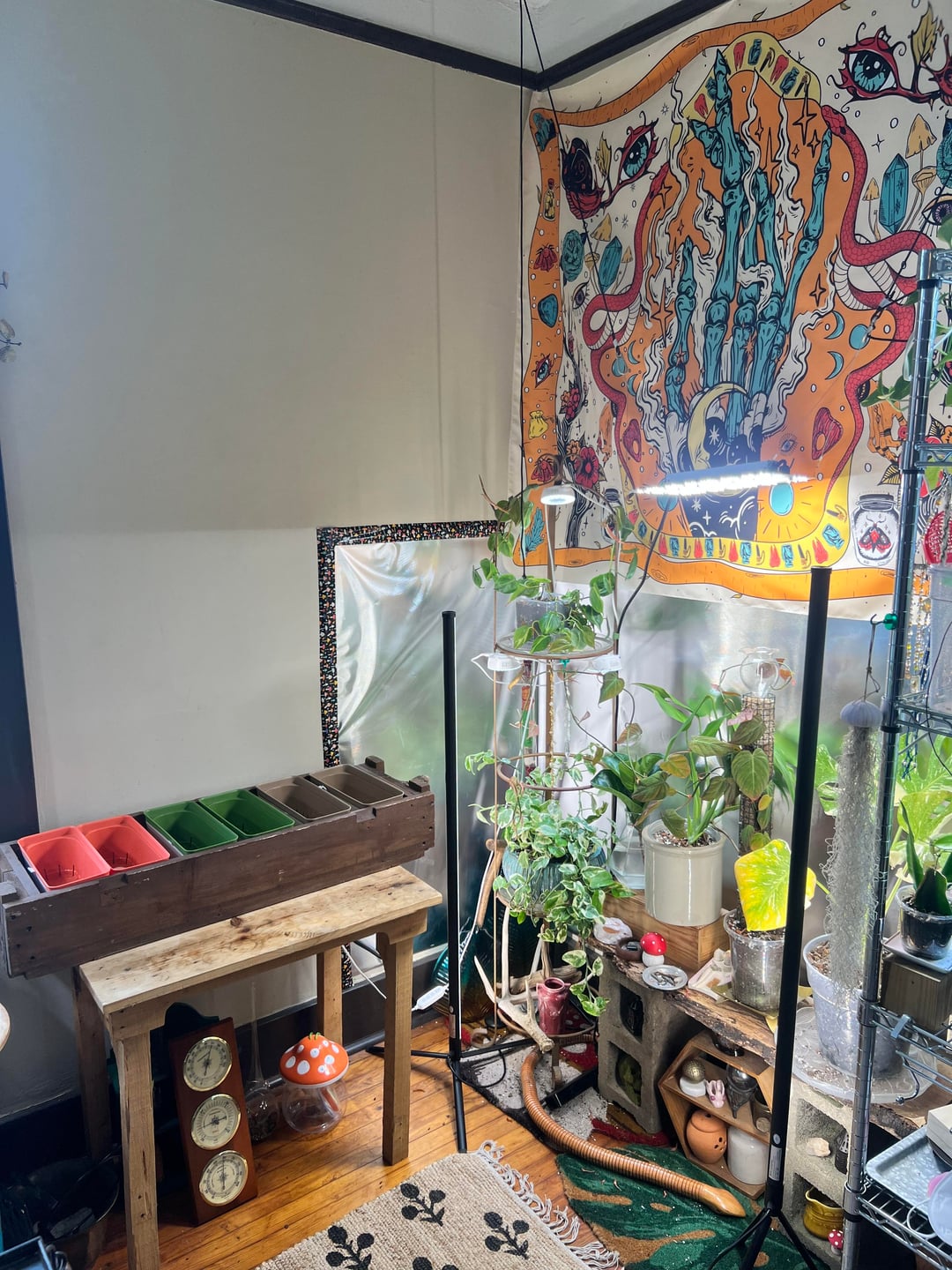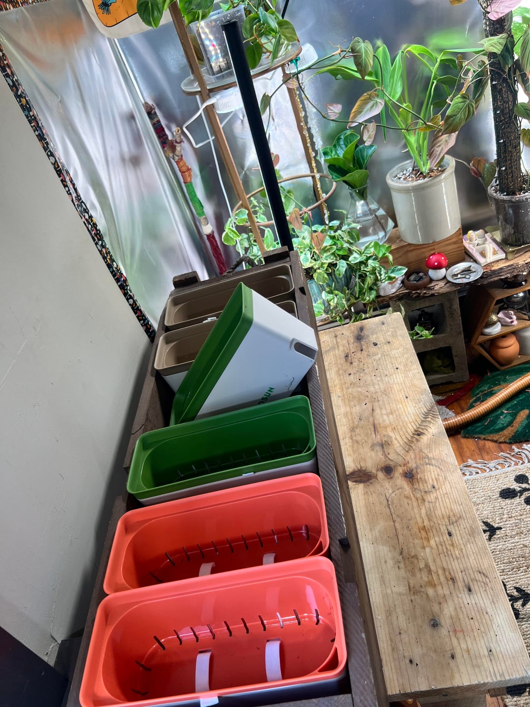 私はグーグルしたり、Pinterestに行きますが、それはすべてaiです笑私は、私が回収したこれらのアンティークの弾薬箱のために、その下に棚を棚にセットアップしたい方法についていくつかのインスポを手に入れたいと思います。私はそれが非常にシンプルだと知っていますが、私は非常に視覚的であり、私は物を救う/買い物をする前にそれを計画したいです。私は上に欲しい2つの弾薬箱を持っているので、この壁/窓の前に長さ約6フィートの長さです。私はちょうど2番目の1000ワットの吊り下げ灯を手に入れました(ハーブに十分であることを願っています)、そしてこれらの自己散水ポットは完璧にフィットします。この箱を取得すると、棚をセットアップして2番目の弾薬クレートで始めます。そこにイケアのキャビネットがありましたが、別の部屋に移動しました。空白の壁のスペースにもっと反射的な素材を置きます。