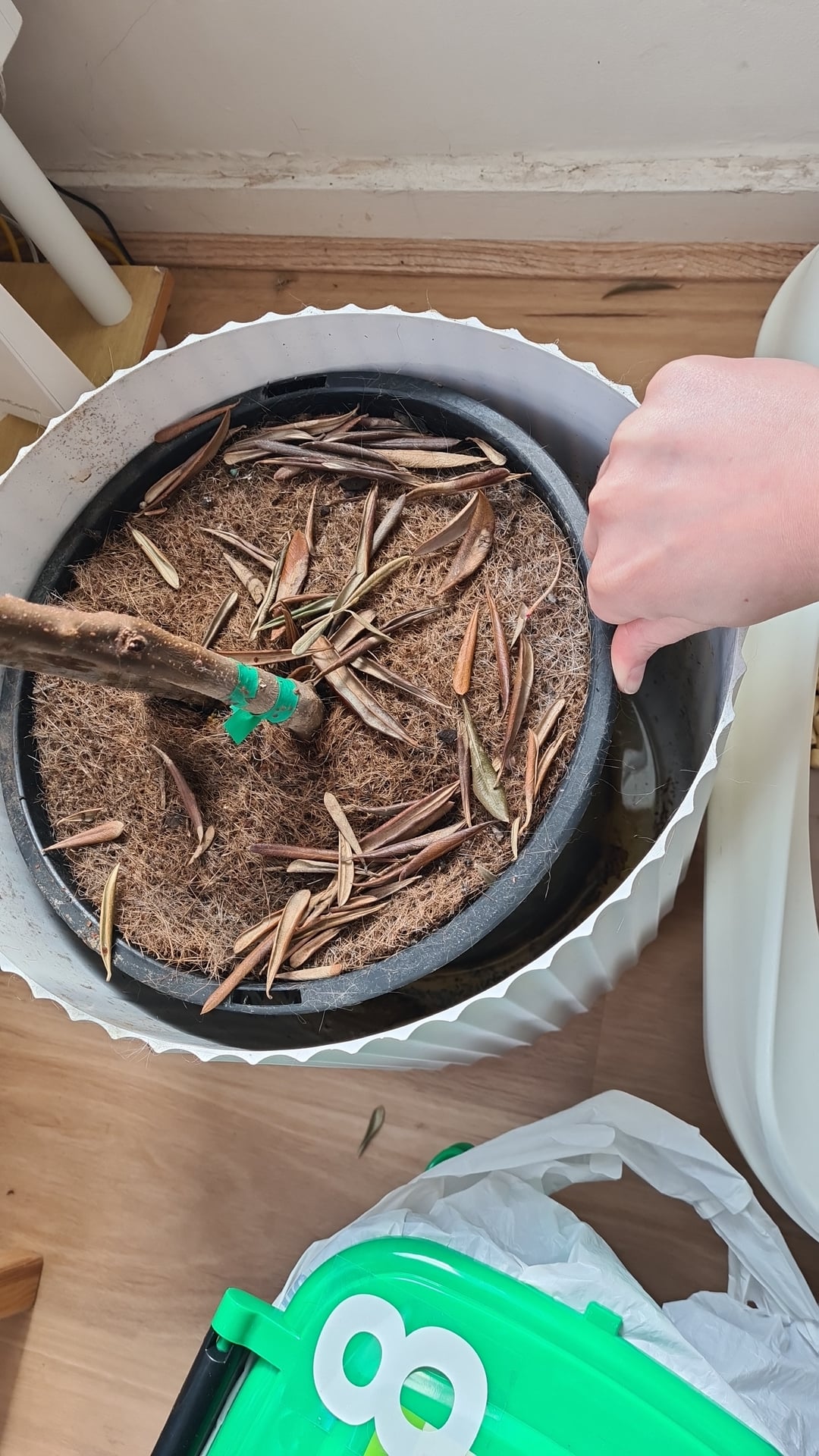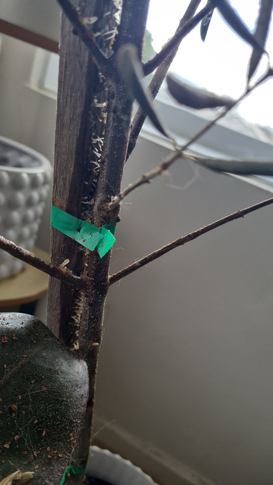 私はそれを入ったのと同じポットに入れていたので、干し草のような覆いを上に置いたままにしました。年の初めに、私はそれが近くの植物に移動している超粘着性の樹液で覆われていることに気付きました。 5月ごろ、葉が大きな時間を落とし始めました。現時点では、葉を積極的に落とすことはありませんが、それに対してわずかなブラシでさえ、それらが落ちます。