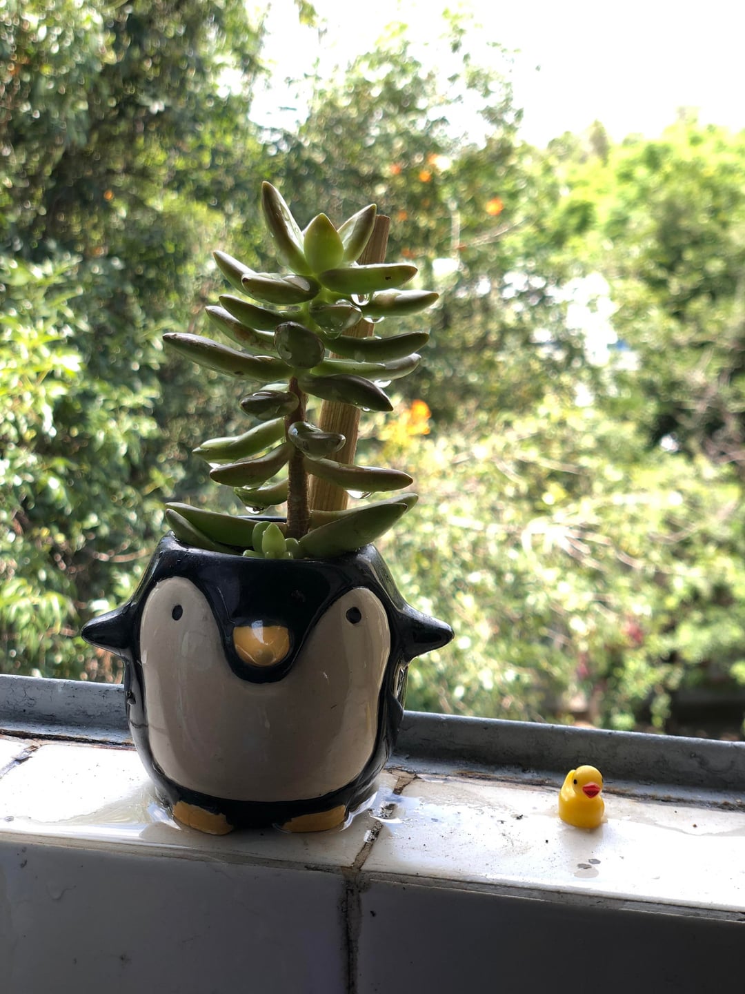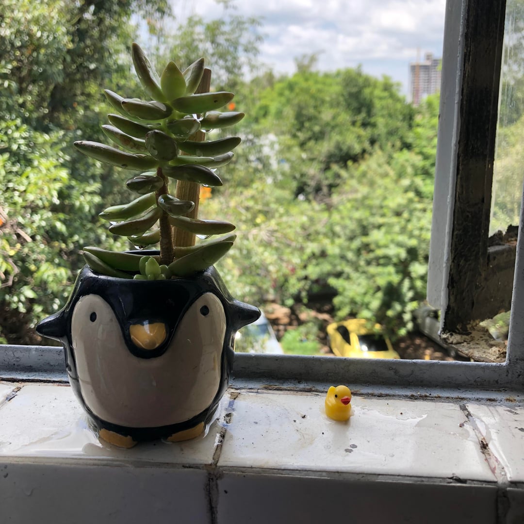 AH CRECIDO BASTANTE Y EH PENSADO EN CAMBIARLA A OTRA MACETA、PERO SE VE TAN HERMOSA CON LA MACETA DE PINGUINO QUE NO SHE SI DEJARLAAHí